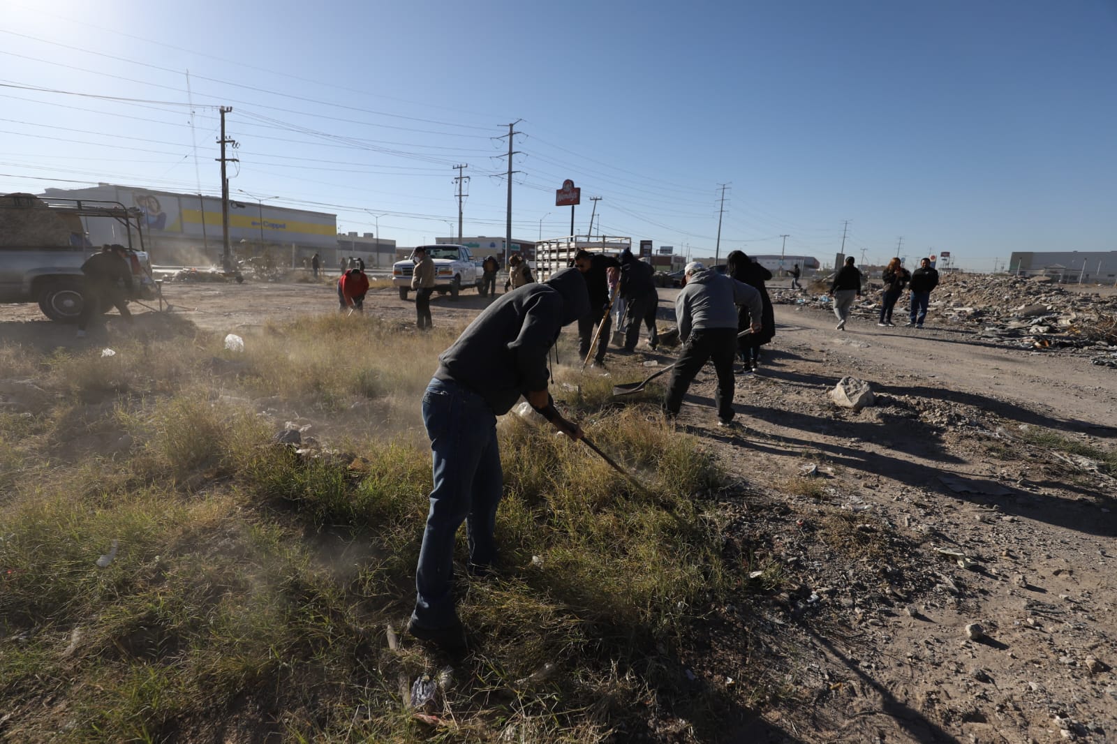 La Dirección General de Servicios Públicos Municipales, a través de la Dirección de Limpia, apoyó a los comerciantes del mercado Francisco Villarreal con labores de limpieza en un predio donde se estarán instalando para ofertar sus productos.