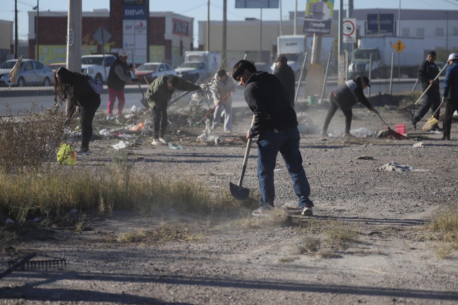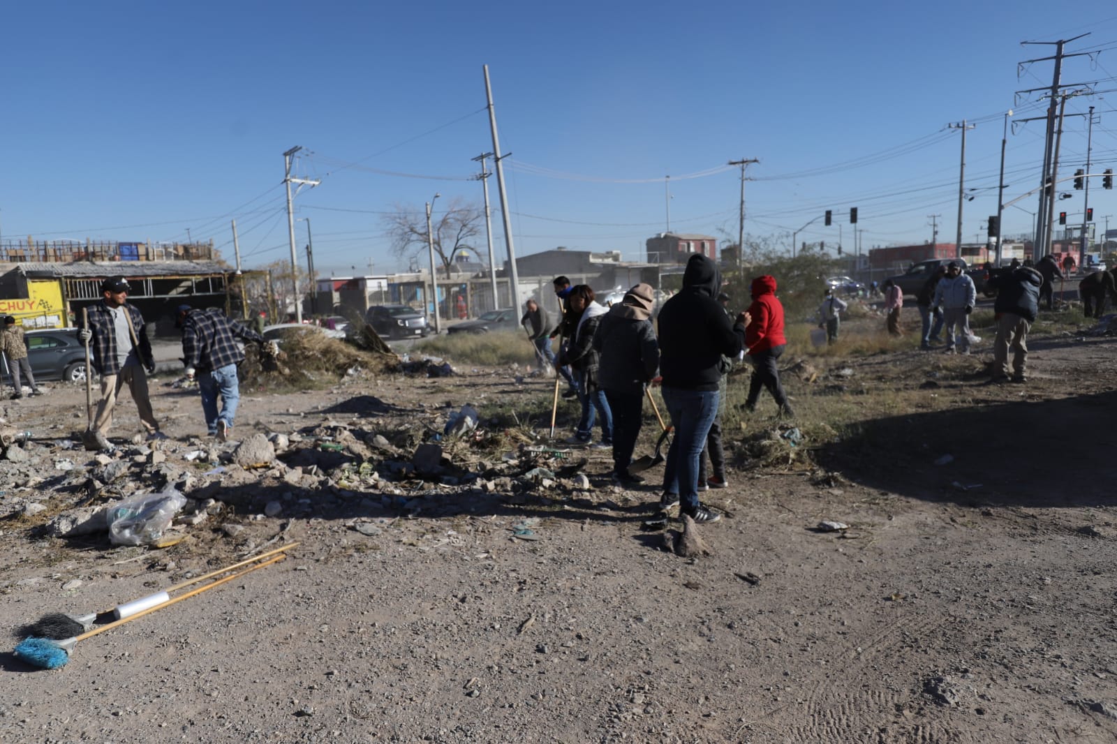 Alrededor de 150 comerciantes se sumaron a los trabajos de la cuadrilla que se encargó de la limpieza general con maquinaria pesada, además del corte de hierba y retiro de basura y escombro.