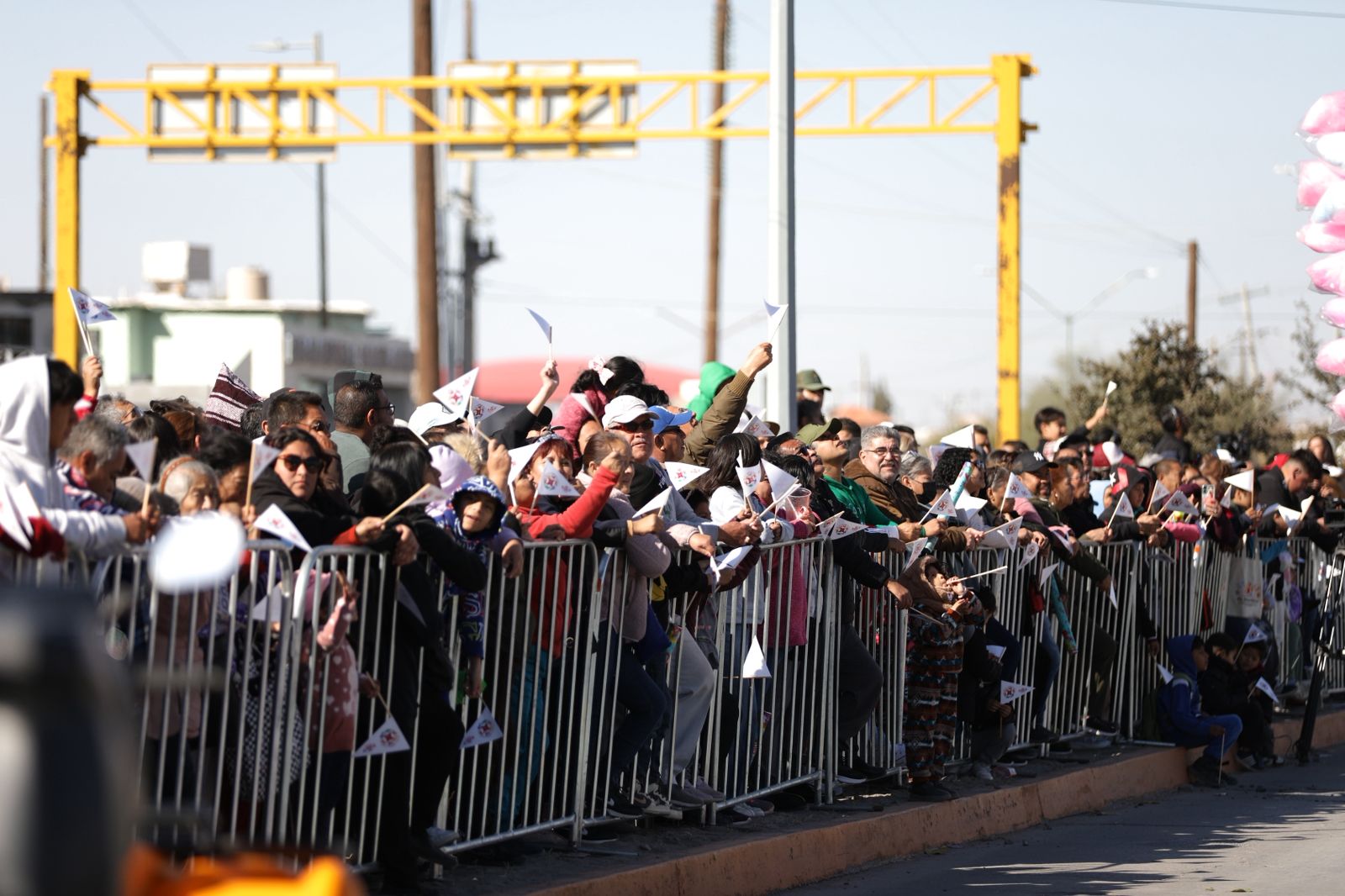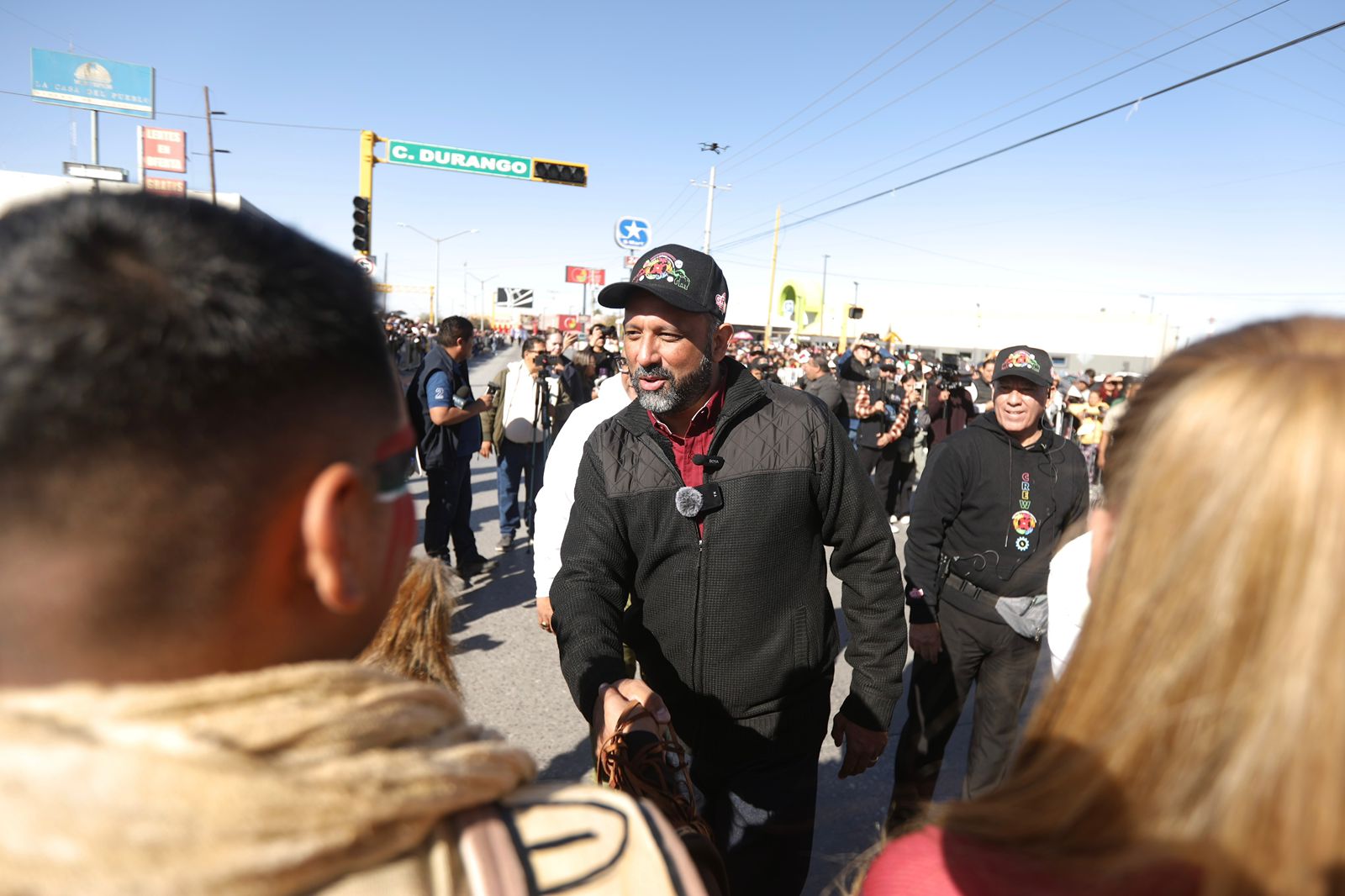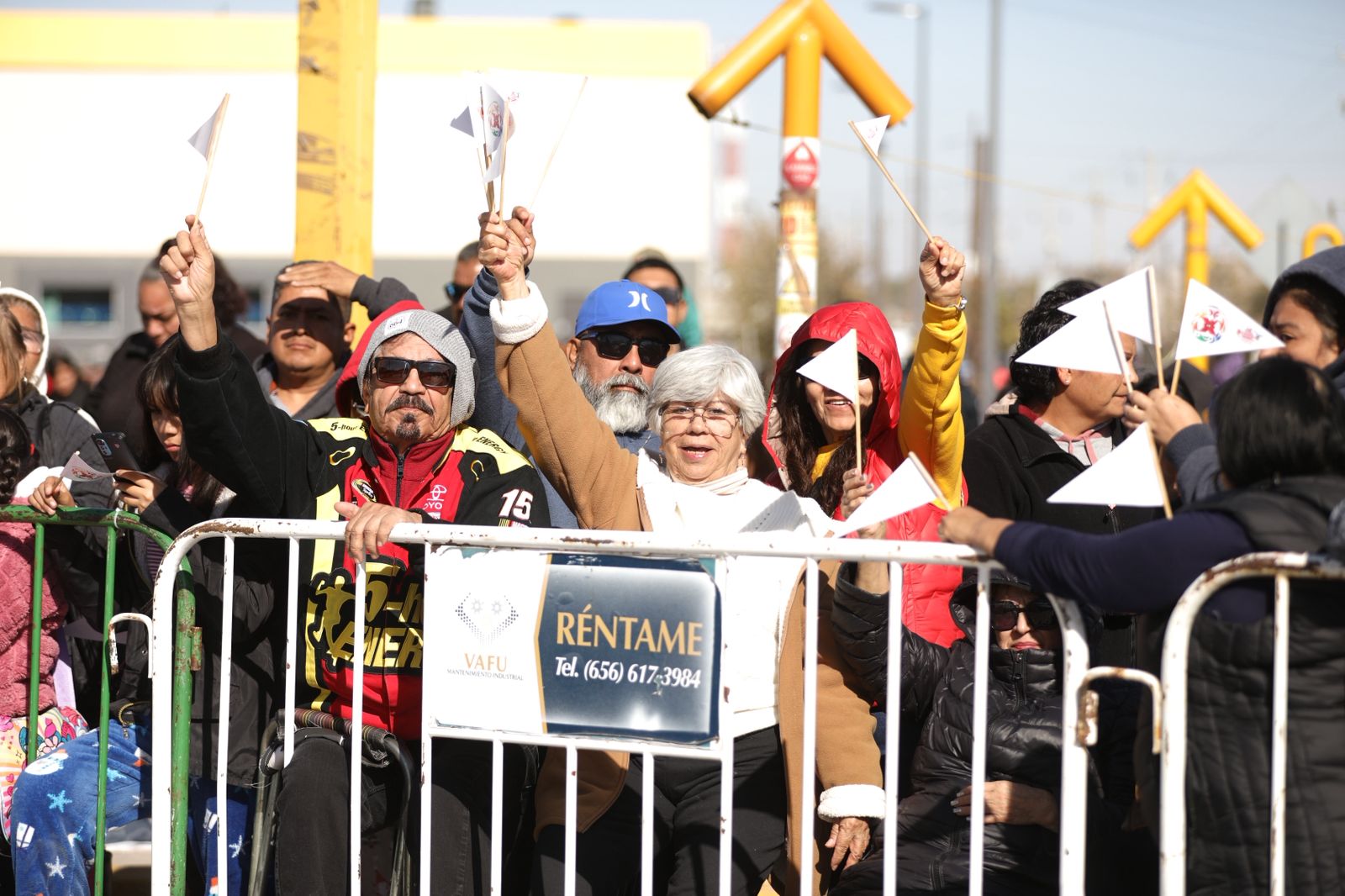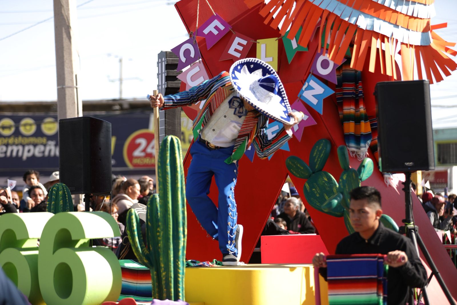 El secretario del Ayuntamiento, Héctor Ortiz Orpinel, en representación del Presidente Municipal, Cruz Pérez Cuéllar, dio el arranque al Cuarto Gran Desfile por el 366 aniversario de Ciudad Juárez, que se llevó a cabo en el bulevar Zaragoza, saliendo en la calle Durango.