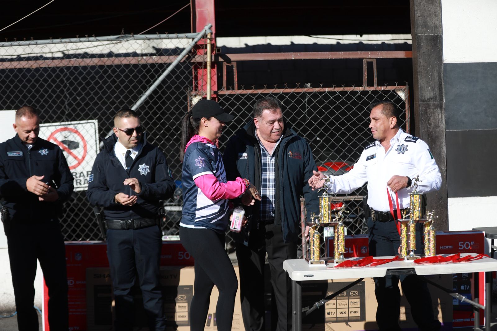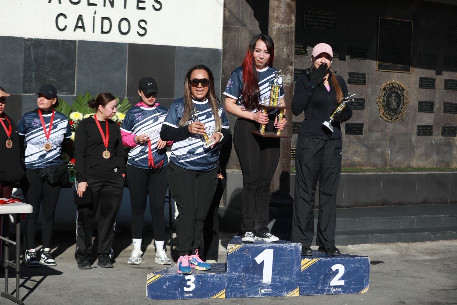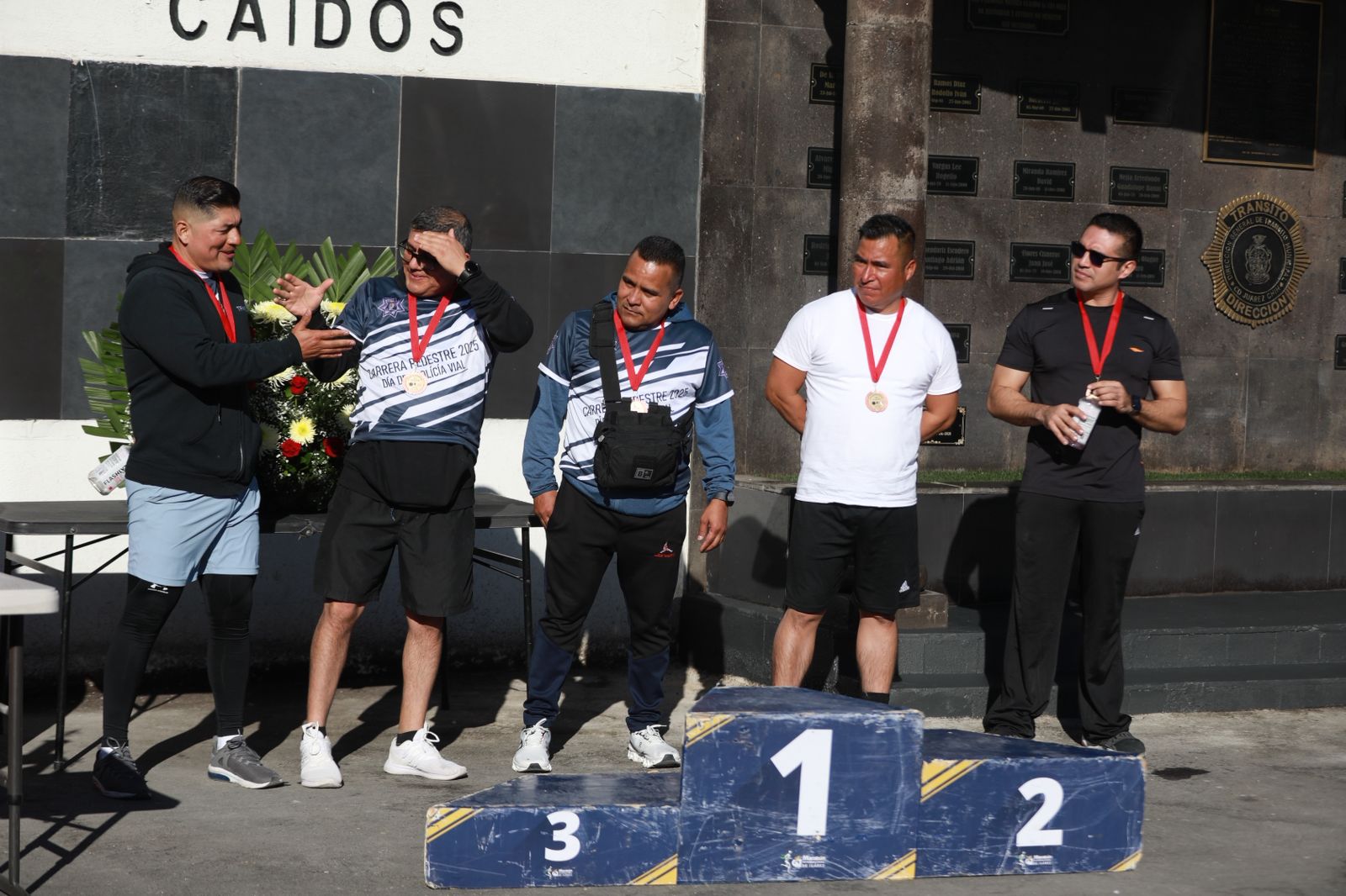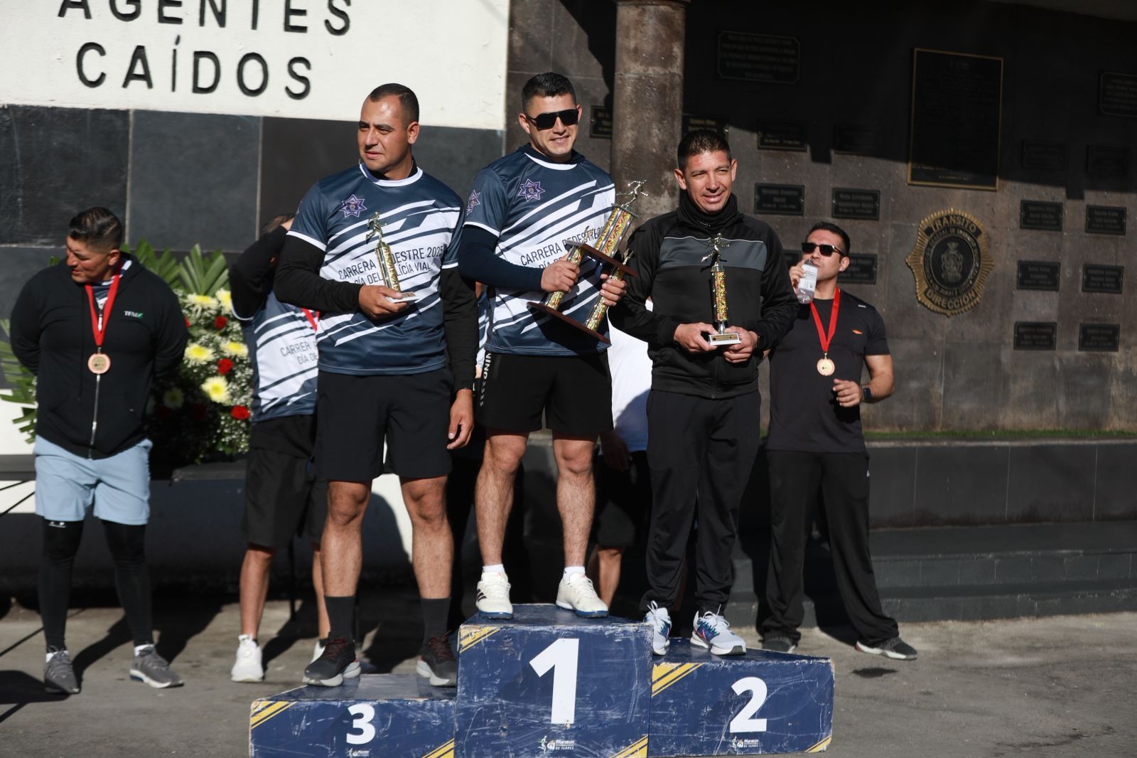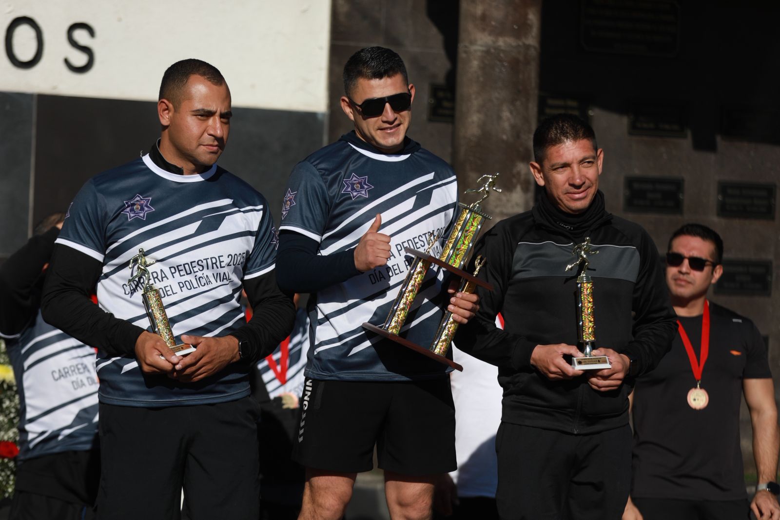 De la misma manera, tras finalizar la misa oficial por el Día del Policía Vial, celebrada esta mañana, se llevó a cabo el arranque de la carrera pedestre, que partió de la capilla con rumbo hacia las oficinas centrales de Seguridad Vial, donde se premió con medallas y trofeos a los ocho primeros lugares de las ramas femenil y varonil.