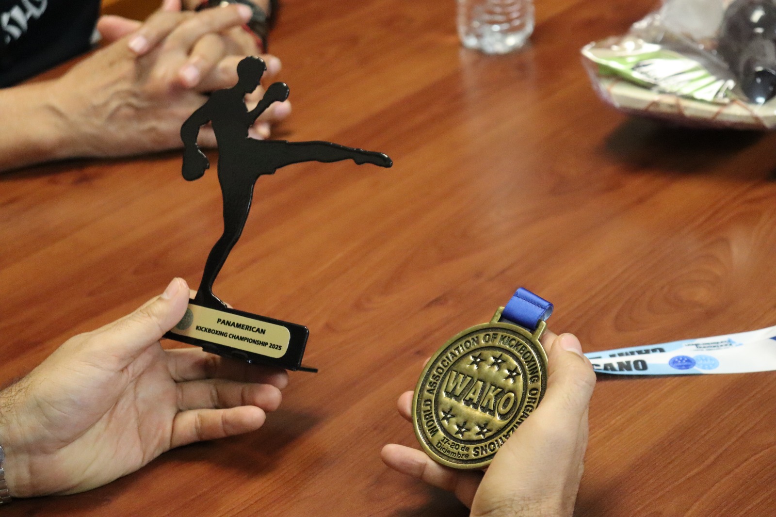 Luego de su triunfo en el Campeonato Panamericano de Kickboxing, el medallista de oro Mateo HolguÃn visitó al director del Instituto Municipal del Deporte y Cultura FÃsica de Juárez, Juan Escalante, para agradecer el apoyo recibido por el Gobierno Municipal y demostrar que cumplió su promesa de convertirse en campeón.