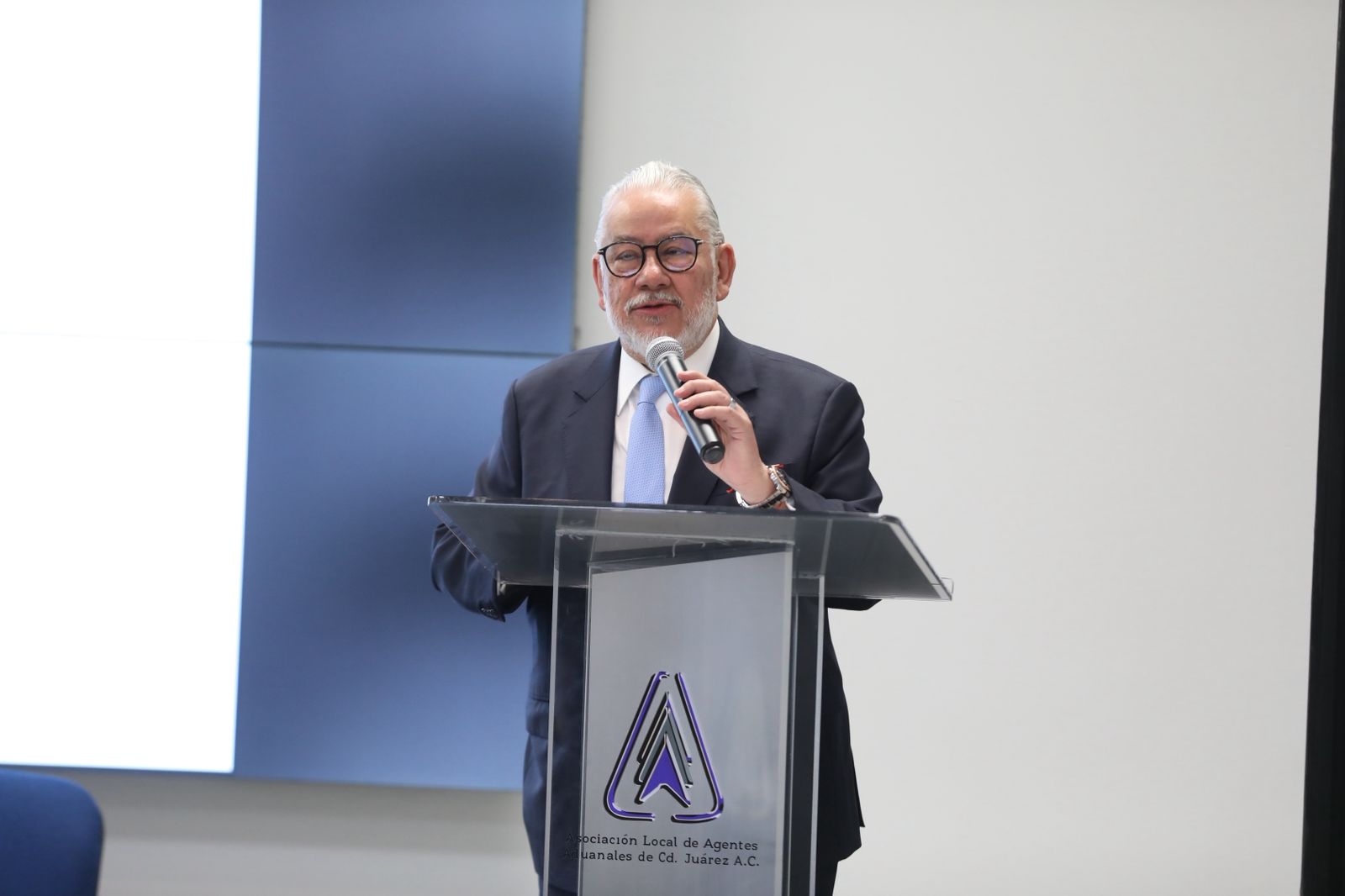 “Les agradezco a todos su presencia y me da gusto recibirlos en la casa de los agentes aduanales”, expresó.
