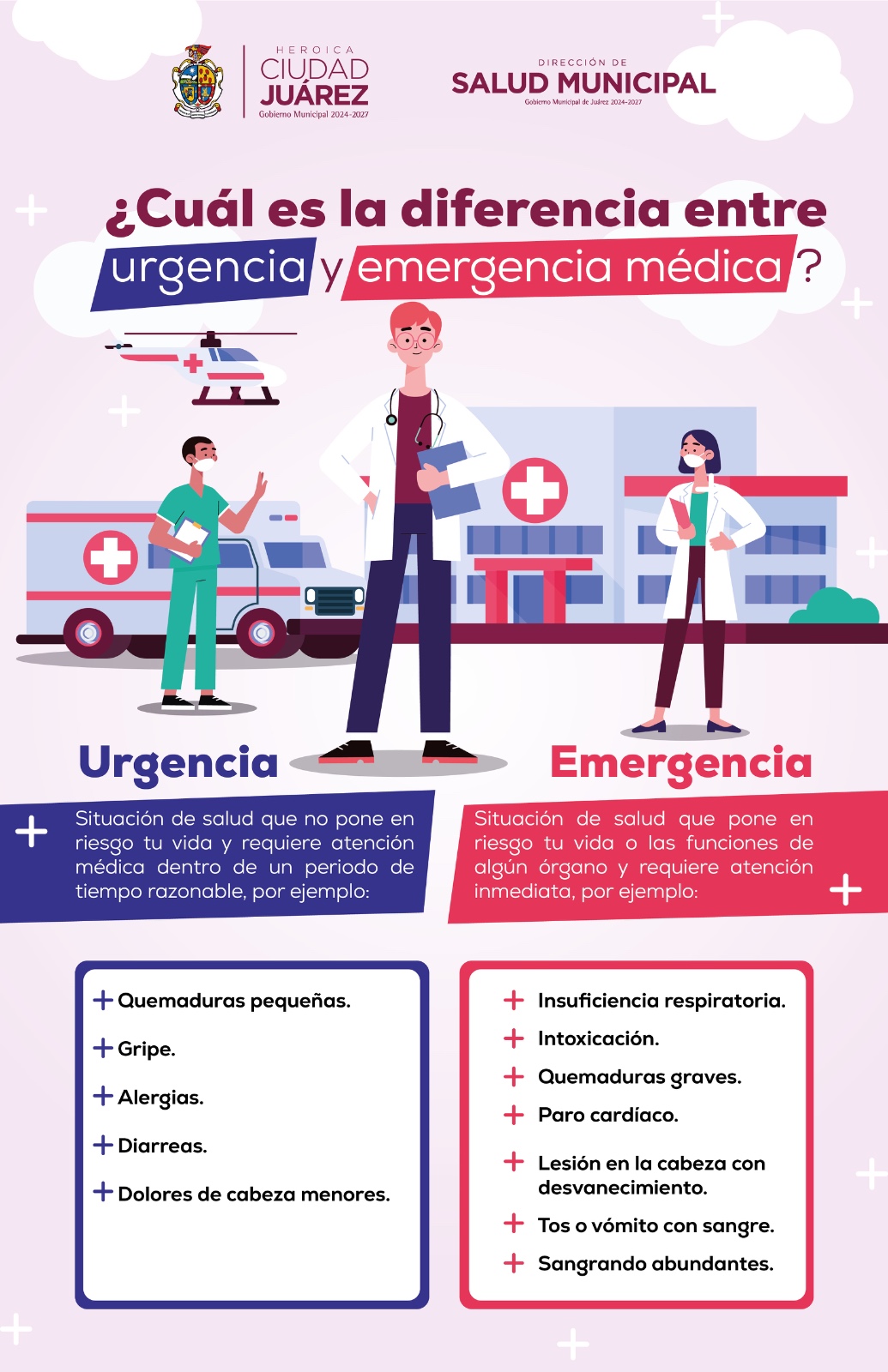 La Dirección de Salud Municipal hizo un llamado a la ciudadanía para identificar correctamente la diferencia entre una emergencia y una urgencia, ya que esta distinción puede marcar la diferencia entre salvar una vida o agravar una situación de riesgo, informó la titular de la dependencia, Daphne Santana Fernández.