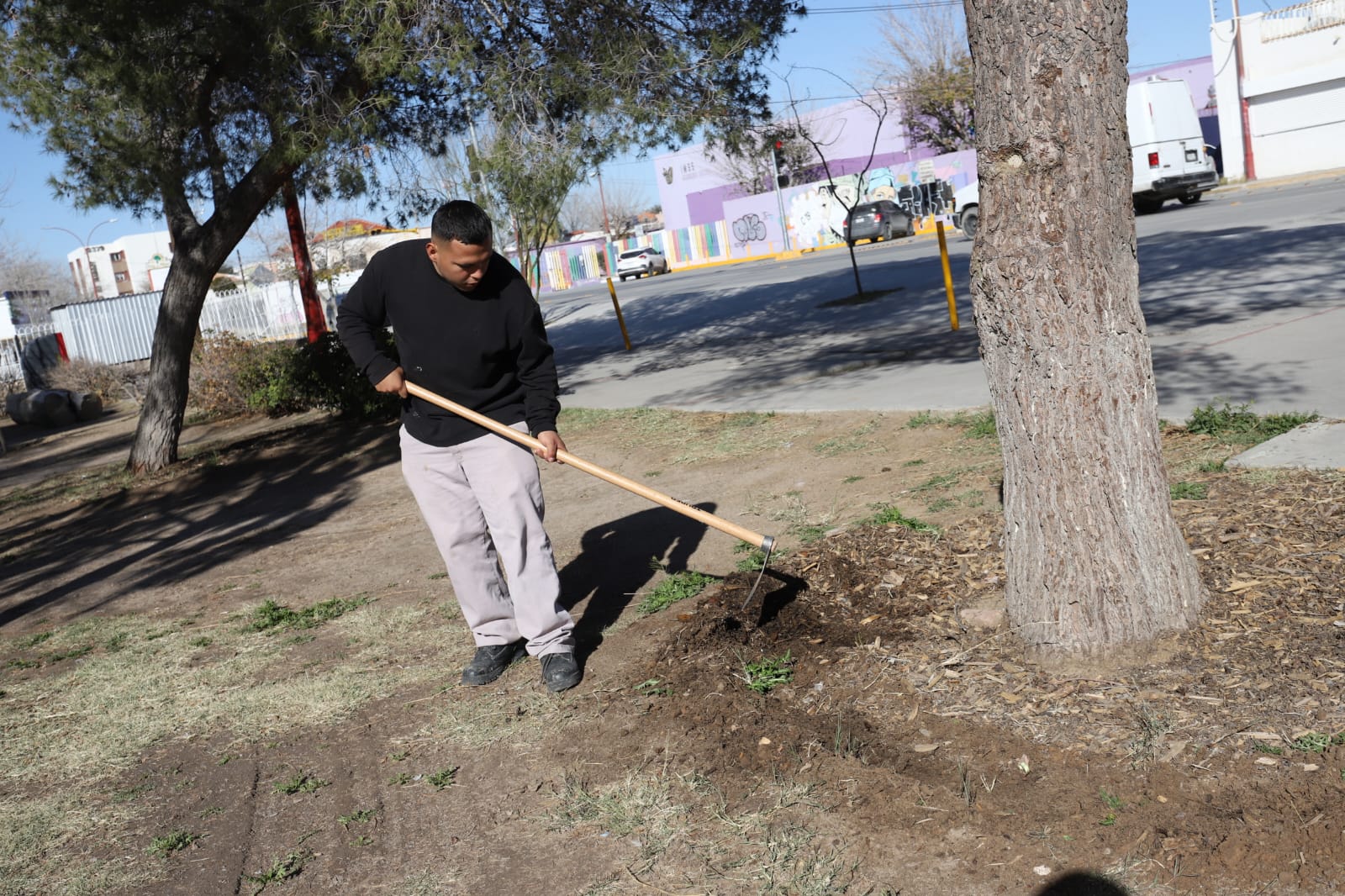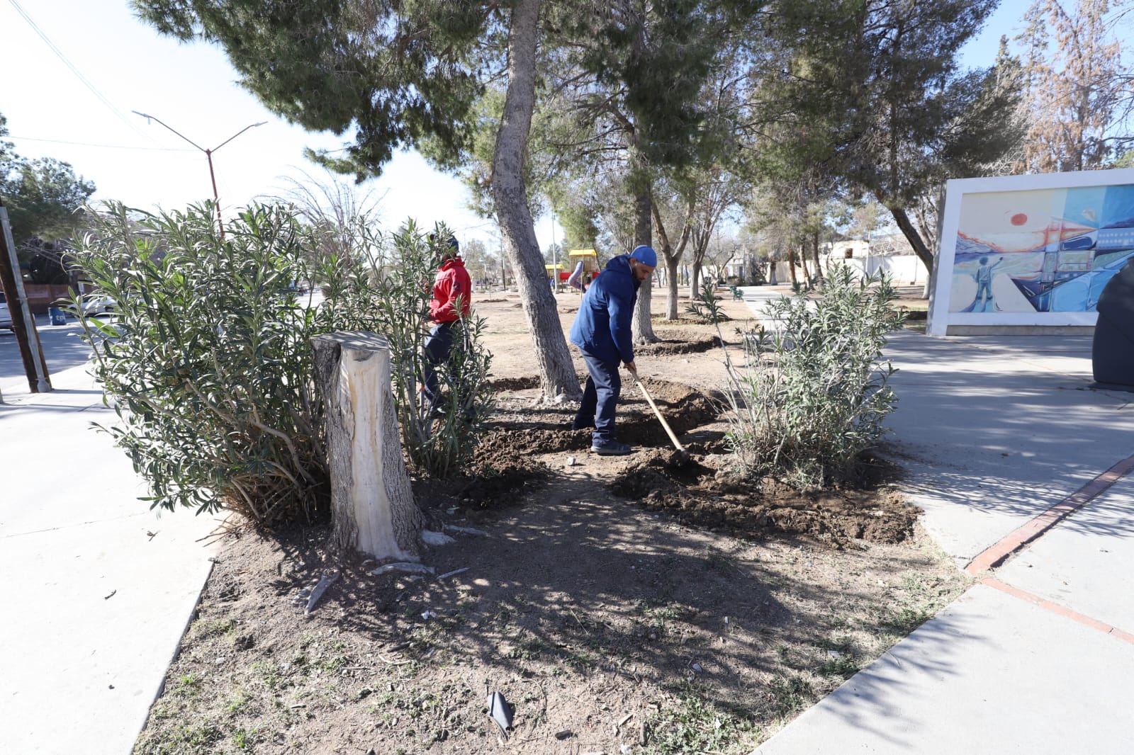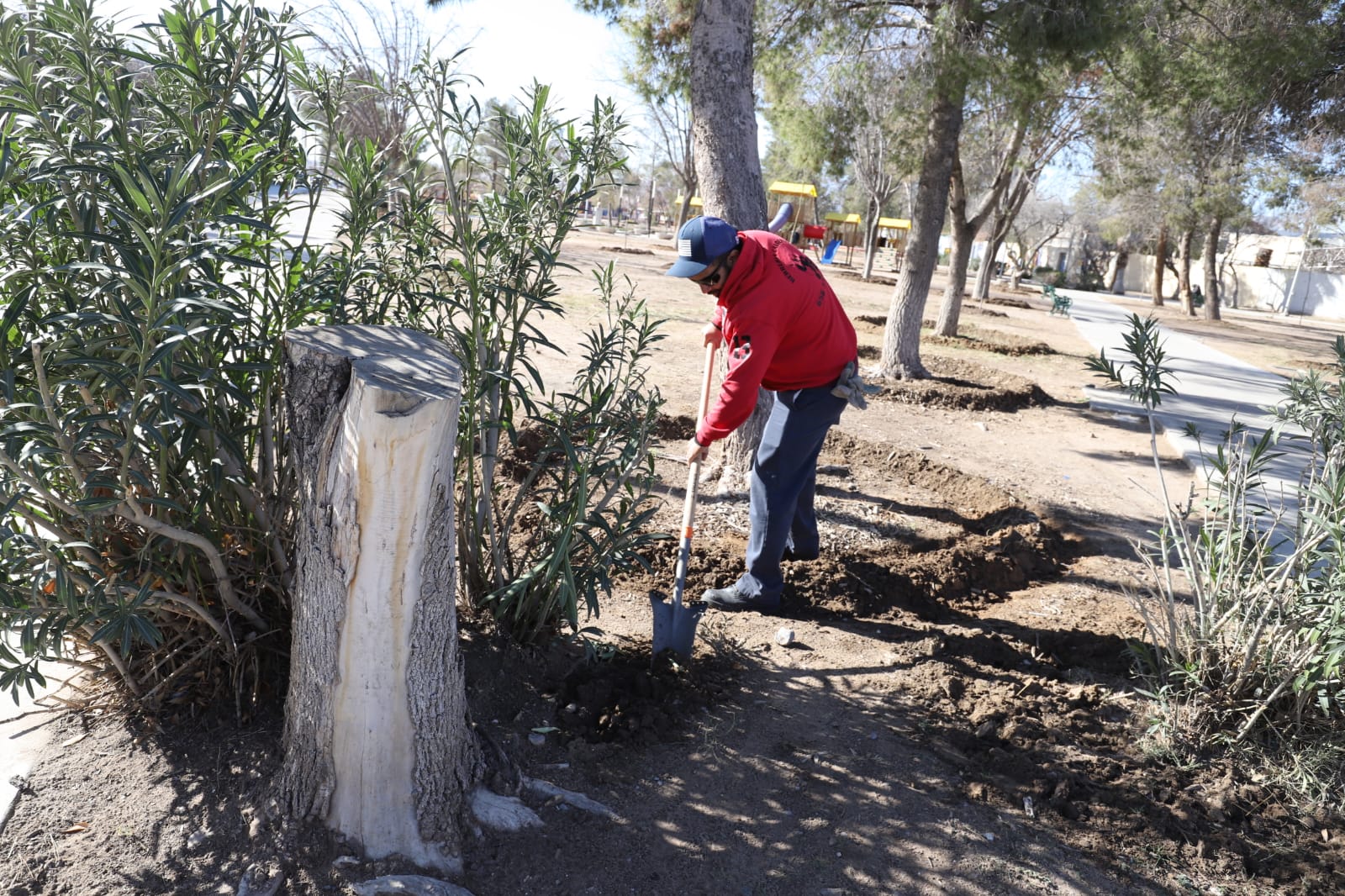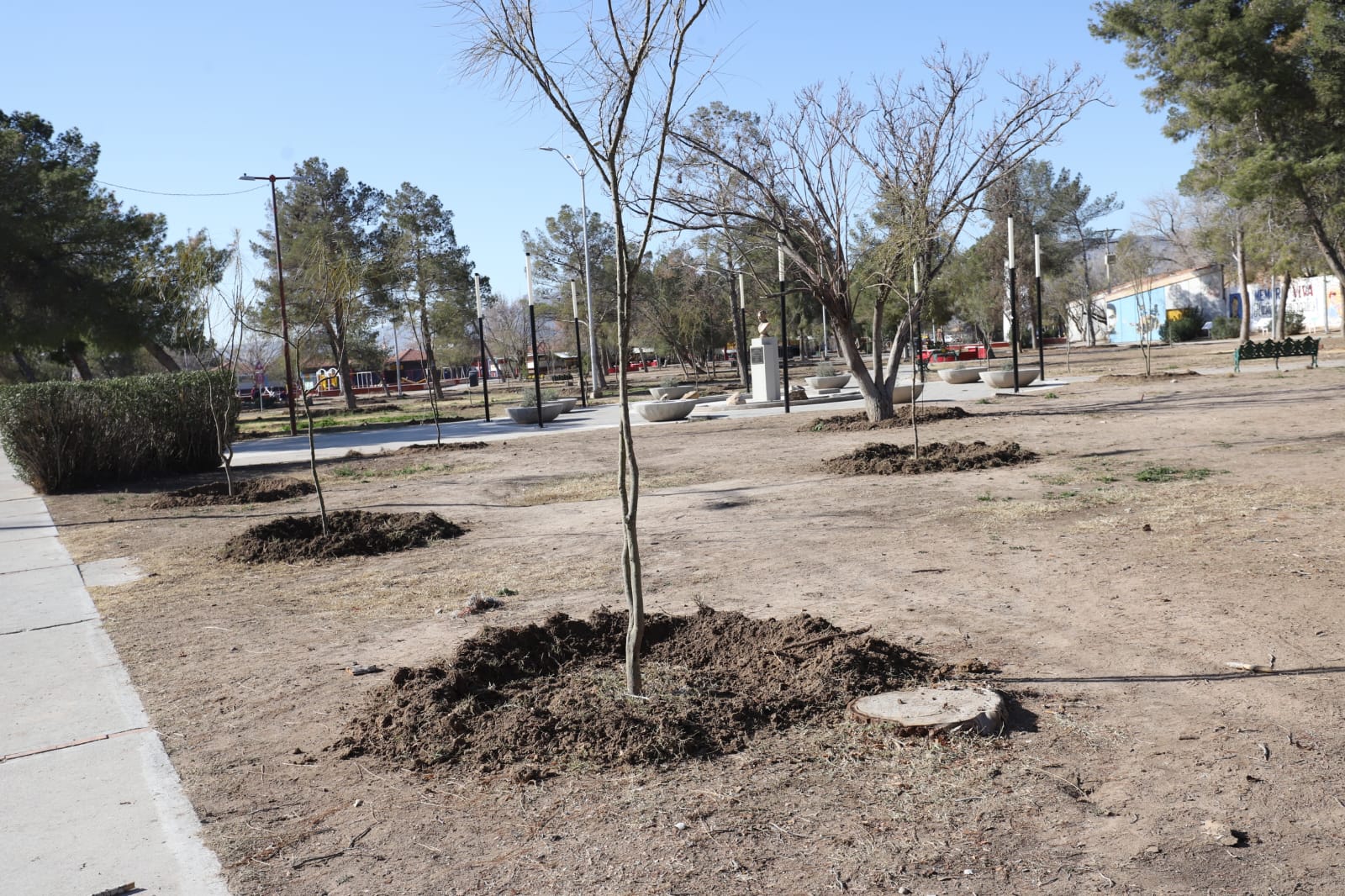 Con el fin de que las familias juarenses cuenten con espacios verdes más agradables y en mejores condiciones para la convivencia, personal de la Dirección de Parques y Jardines realiza trabajos de reforestación y mantenimiento en el Parque Borunda.