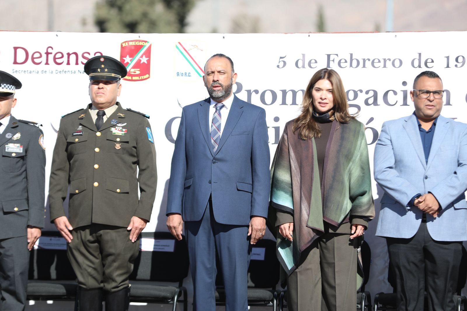 En representación del Presidente Municipal, Cruz Pérez Cuéllar, el secretario del Ayuntamiento, Héctor Rafael Ortiz Orpinel, destacó que el 5 de febrero de 1917 marcó el nacimiento de un nuevo proyecto de nación basado en la justicia social, la libertad, la igualdad y la legalidad, principios que siguen siendo el eje de las políticas públicas y acciones de Gobierno en la actualidad.