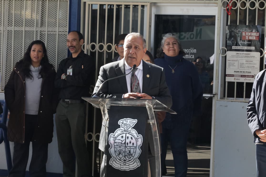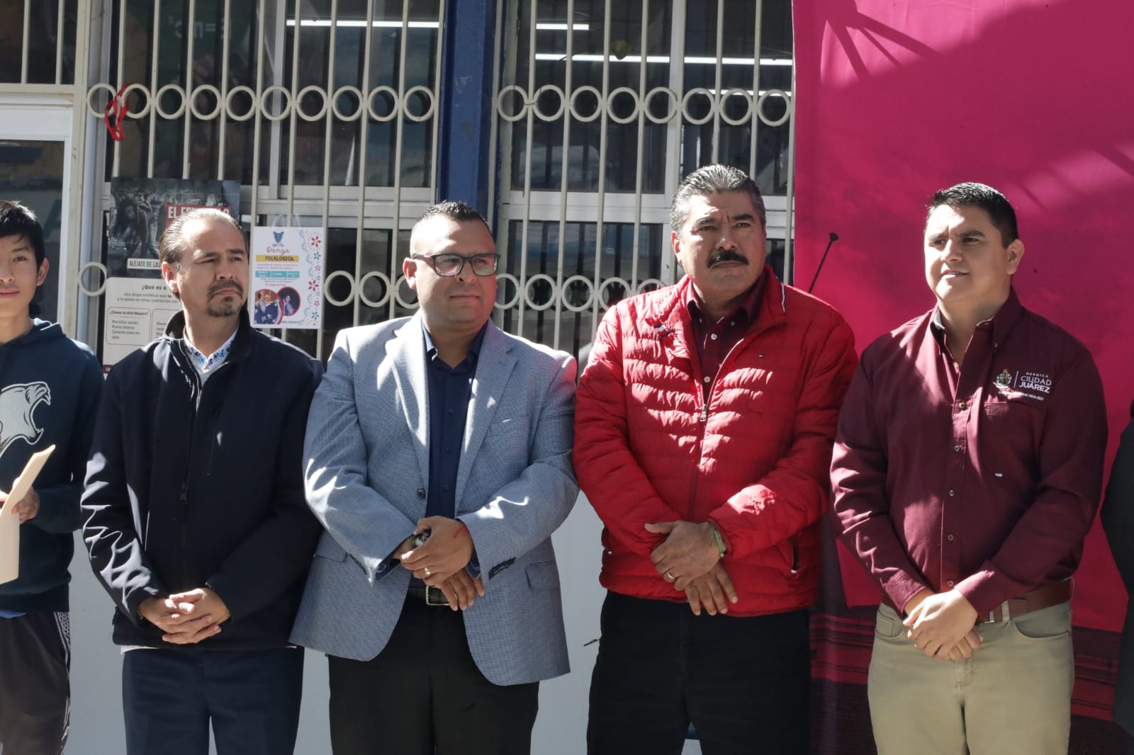 En la entrega estuvieron el presidente de la sociedad de padres de familia, Jua Pablo Carrasco; Vicente de Jesús Nájera, supervisor de zona; Albar Bojórquez, secretario general del área 256 sección 8; Hermes Trejo de la Cruz, supervisor del turno matutino; Rene García, subdirector del turno vespertino; Juan Pablo Carrasco, director del plantel; Ismael Rueda, coordinador de Infraestructura del Municipio; Guillermo Alvídrez, director de Educación; Sebastián Aguilera, director de Participación Ciudadana; Cesar Tapia, director de Servicios Públicos y Jorge Marcial Bueno Quiroz, regidor del Ayuntamiento.