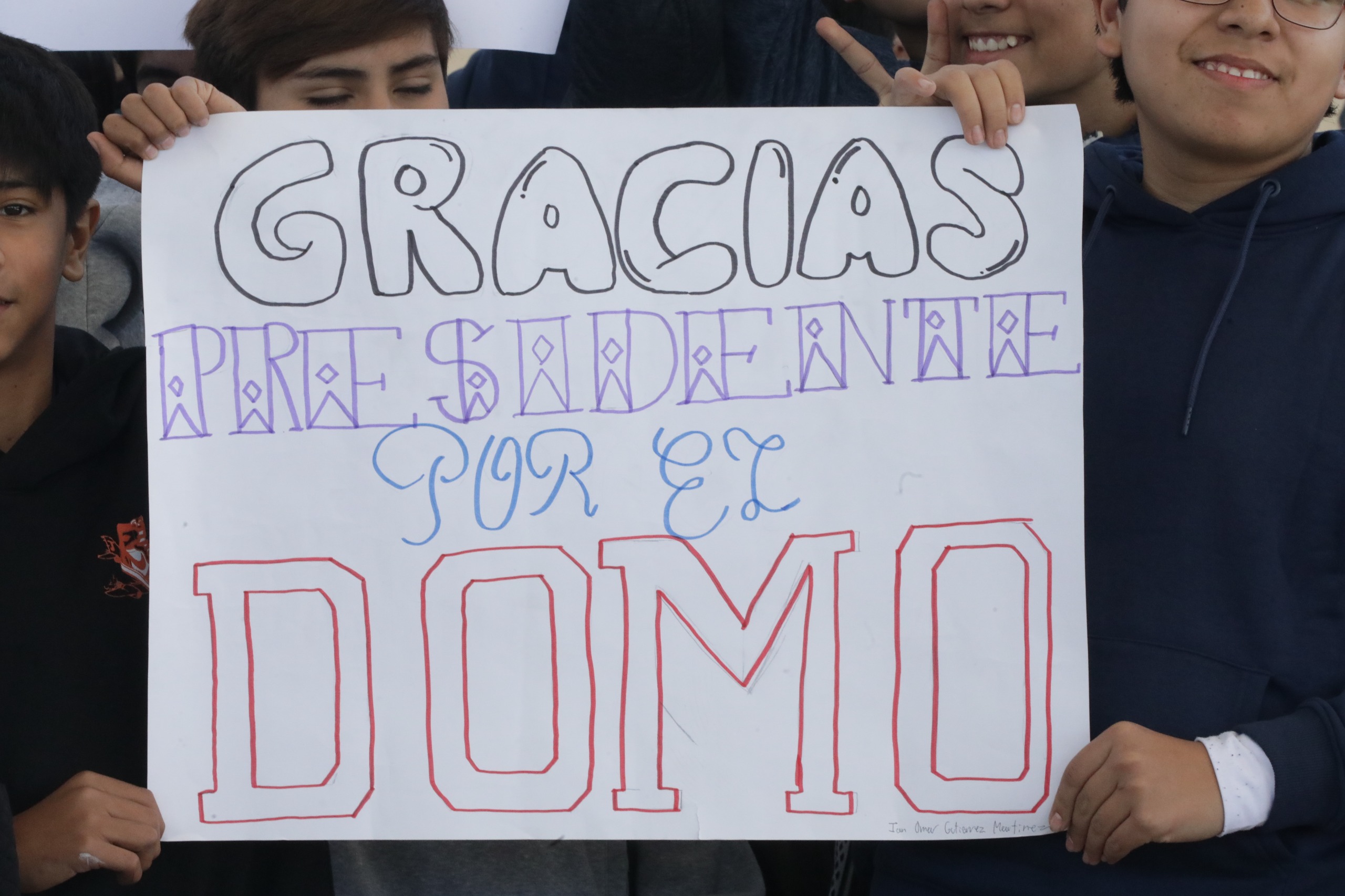 El estudiante Liyang Víctor Manuel Alarcón Hu, agradeció al edil por la construcción de la infraestructura, destacando que ahora con el nuevo domo pueden realizar actividades sin exposición al sol o a la lluvia, por lo que pidió a sus compañeros un grito de agradecimiento hacía el Presidente, quien se ha interesado en las escuelas.