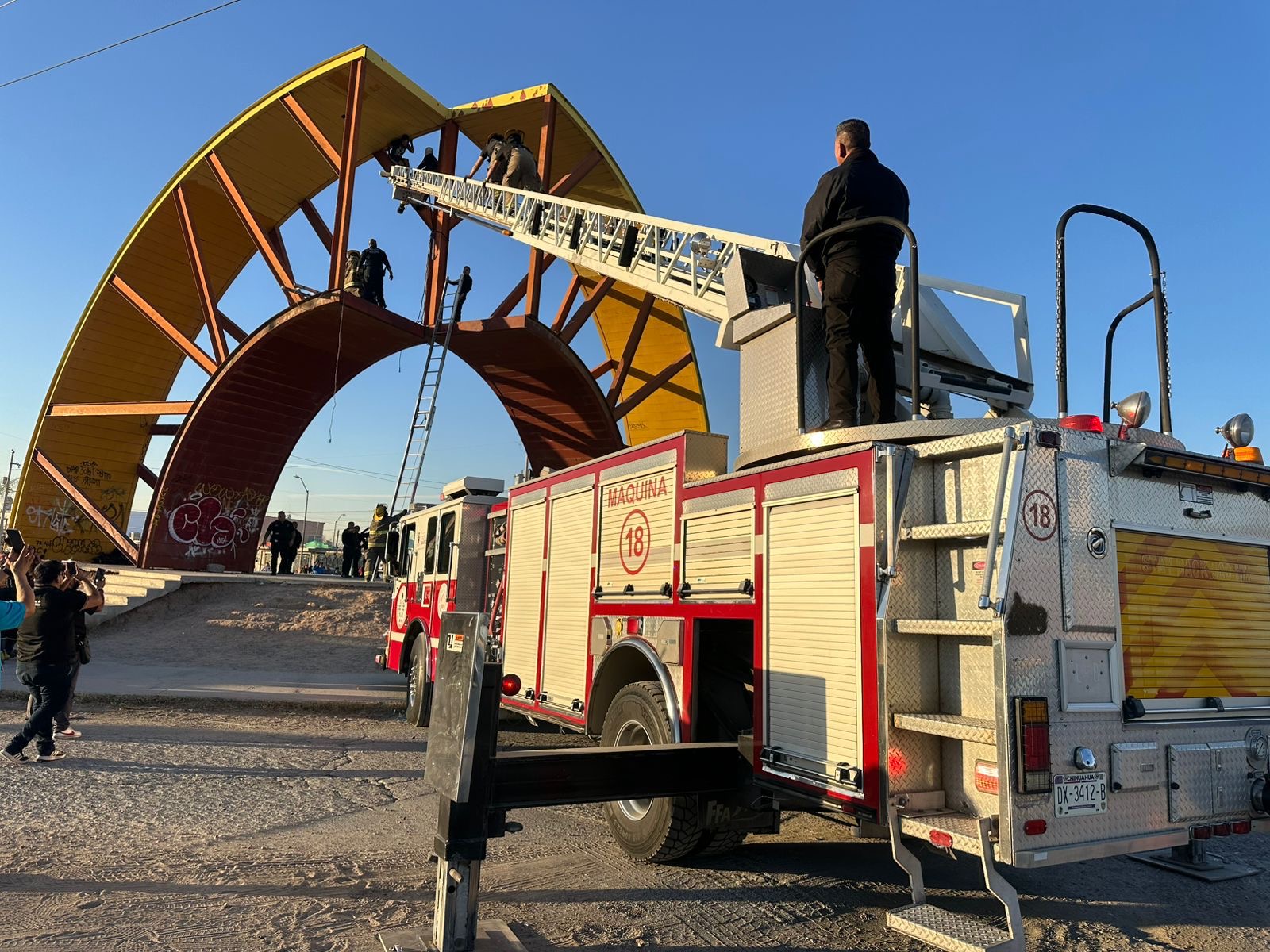 La Dirección General de Protección Civil del Municipio de Juárez informó que este viernes 06 de febrero de 2026, elementos operativos atendieron un reporte de una persona en situación de riesgo que se encontraba sobre un puente ubicado en la calle Yepómera, cruce con Ramón Rayón, en el fraccionamiento Parajes del Sol.