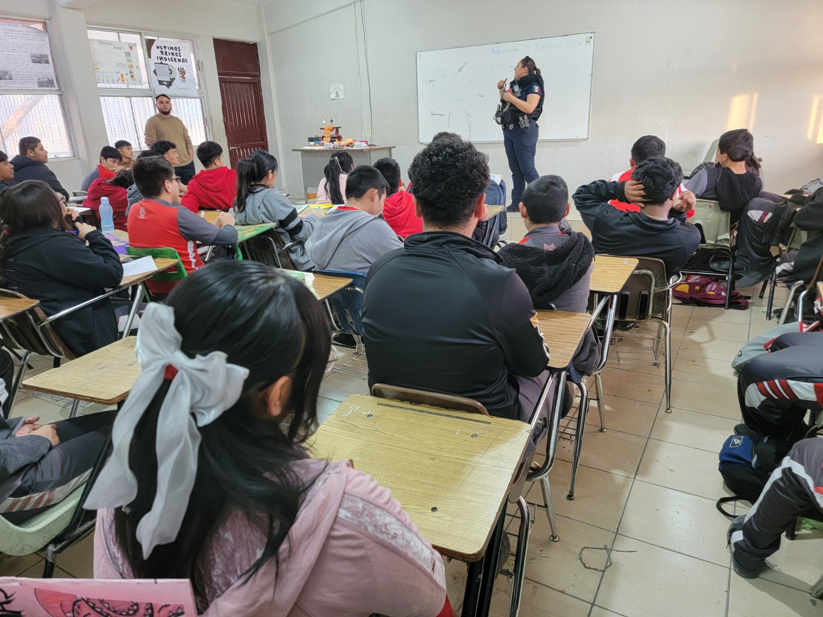 Durante la sesión, se explicó a los estudiantes los riesgos físicos, emocionales y sociales asociados al consumo de sustancias adictivas, así como las herramientas para desarrollar habilidades de autocuidado, toma de decisiones asertivas y resistencia a la presión de grupo, por lo que en cuanto al tema de justicia cívica, se abordaron los derechos y responsabilidades de los ciudadanos, el funcionamiento de los reglamentos municipales y la importancia de resolver conflictos de manera pacífica y respetuosa.