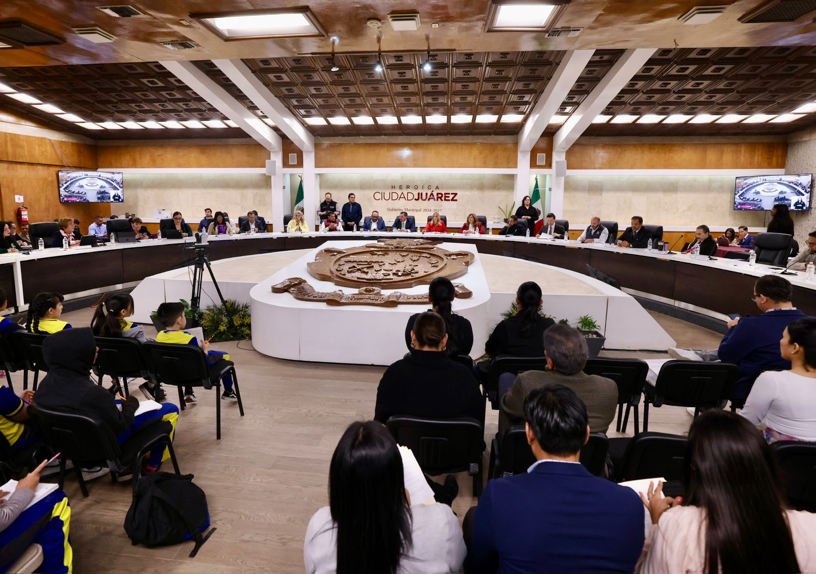 Con el objetivo de que niñas y niños conozcan qué es un Cabildo, quiénes lo integran y qué decisiones se toman en este órgano colegiado, el Presidente Municipal, Cruz Pérez Cuéllar, recibió a estudiantes de cuarto grado, turno vespertino, de la Escuela Primaria América.