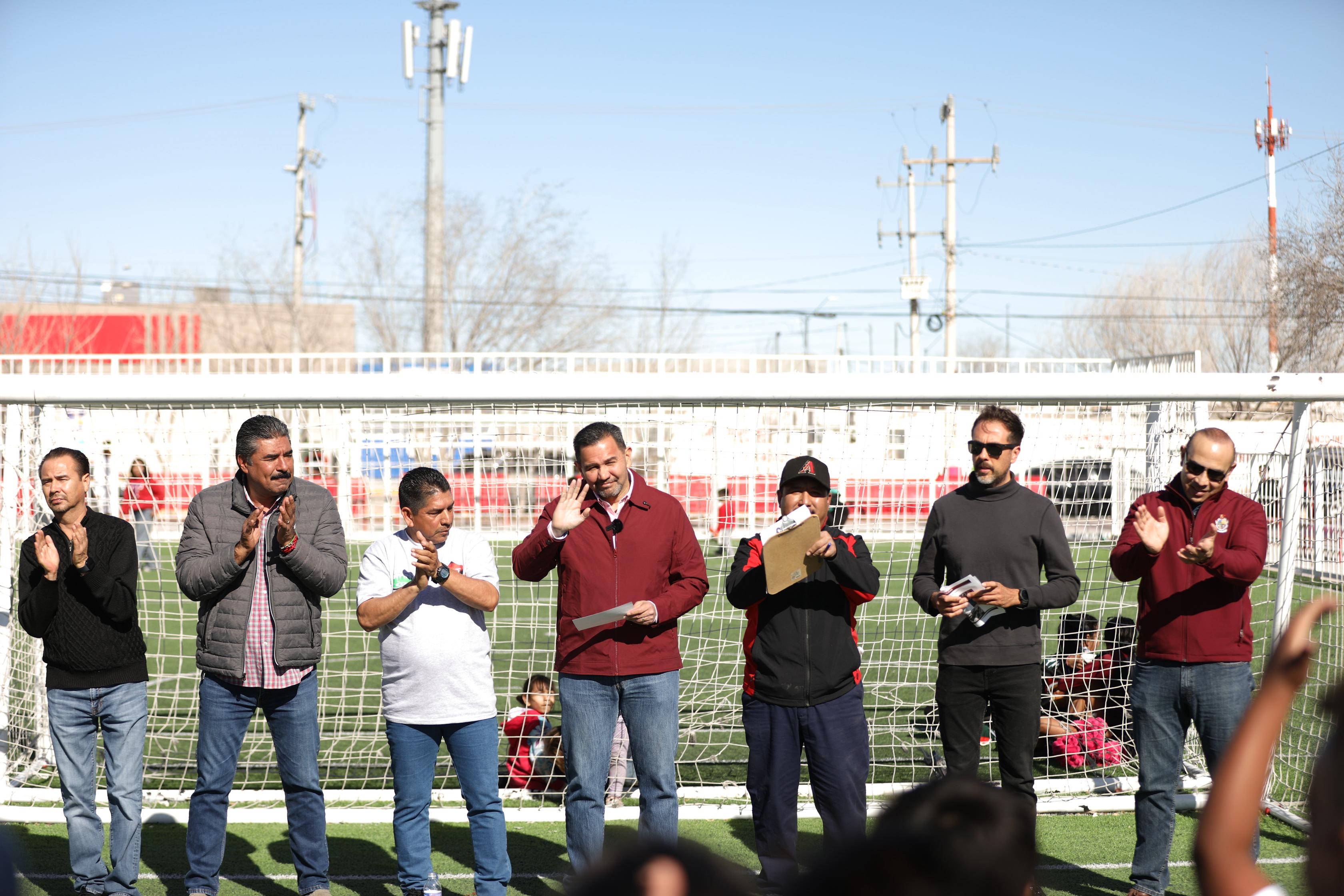 Por su parte, Daniel González García, titular de Obras Públicas informó que la obra consistió en la construcción de dos canchas de fútbol, colocación de mobiliario urbano y juegos, gravas decorativas, la fabricación de una cancha de concreto, además de reja perimetral en las canchas, con una inversión de 10,811,201 pesos.