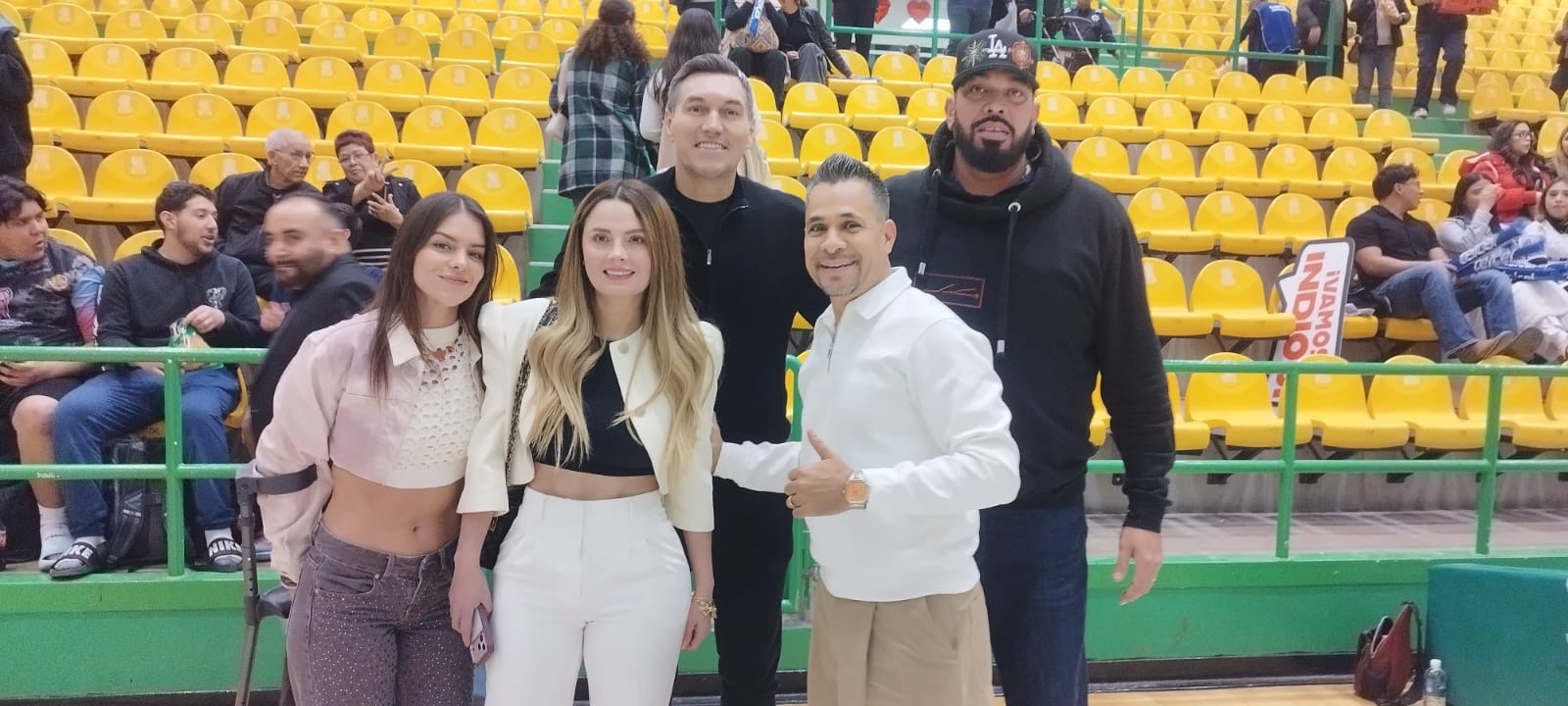 Jorge Gutierrez, Horacio Llamas y Eduardo "Lalo" Nájera, posteriormente disfrutaron el encuentro de basquetbol entre Indios de Ciudad Juárez contra Mineros de Parral , celebrado en el Gimnasio del Colegio de Bachilleres.