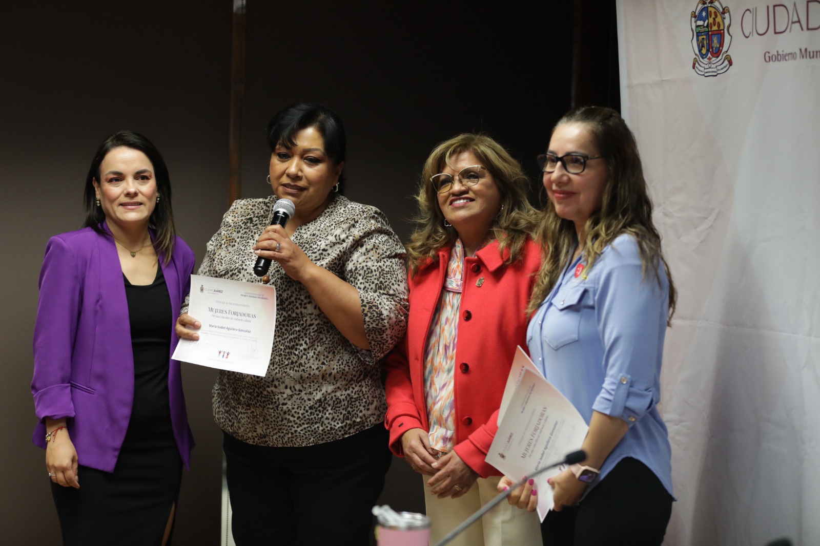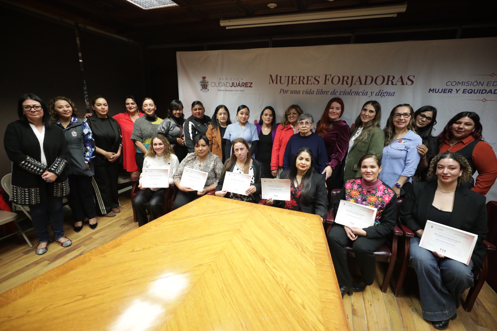 Regidoras de la Comisión Edilicia de Mujer y Equidad de Género entregaron este lunes reconocimientos a Mujeres Forjadoras por una vida libre de violencia y digna, otorgado a aquellas que a través de sus acciones mejoran la calidad de vida de su comunidad.