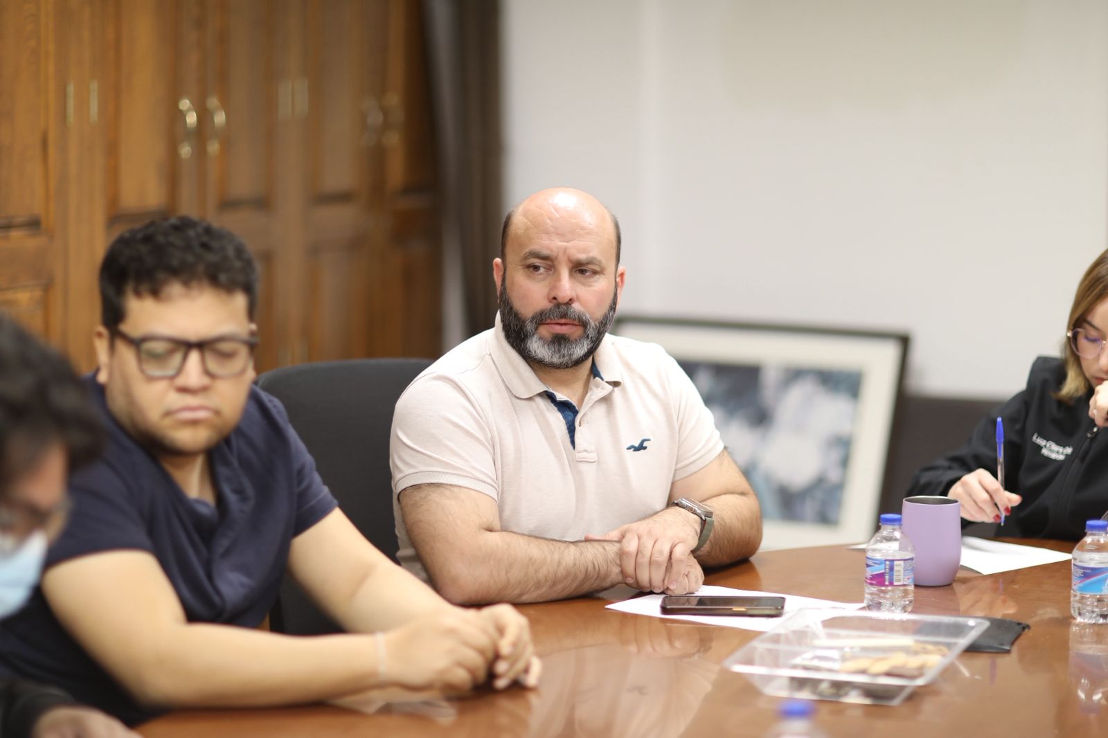 El funcionario se reunió con la regidora y coordinadora de la Comisión, Luz Clara Cristo Sosa, así como sus compañeros ediles Héctor Hugo Avitia Arellanes y Fernanda Avalos Medina, para trabajar en convocar a las y los jóvenes a formar parte del Consejo Directivo del IMJJ.