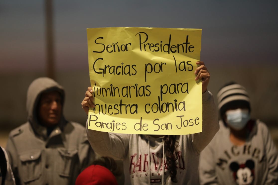 Este martes por la noche, el Presidente Municipal, Cruz Pérez Cuéllar, encabezó la entrega de nuevas luminarias en las colonias Parajes de San José y Valle de Fundadores, como parte de las acciones para fortalecer el alumbrado público y mejorar la seguridad en estos sectores de la ciudad.