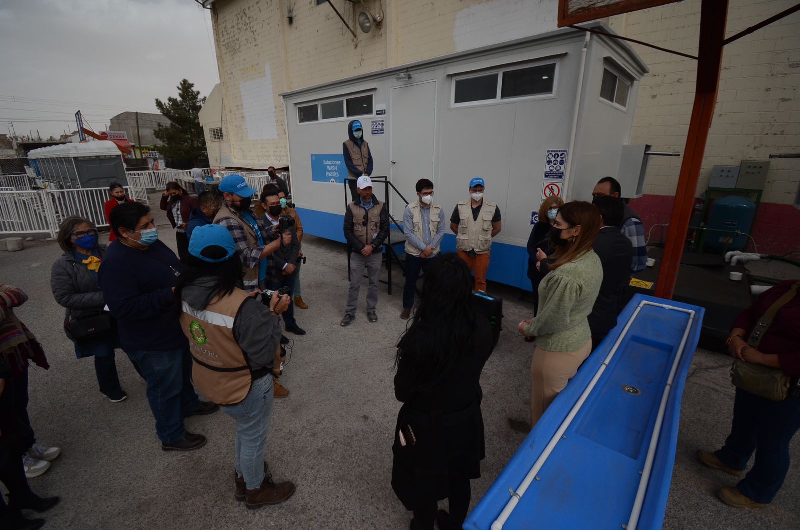 Unicef donó dos estaciones móviles de sanitarios y regaderas al albergue para migrantes