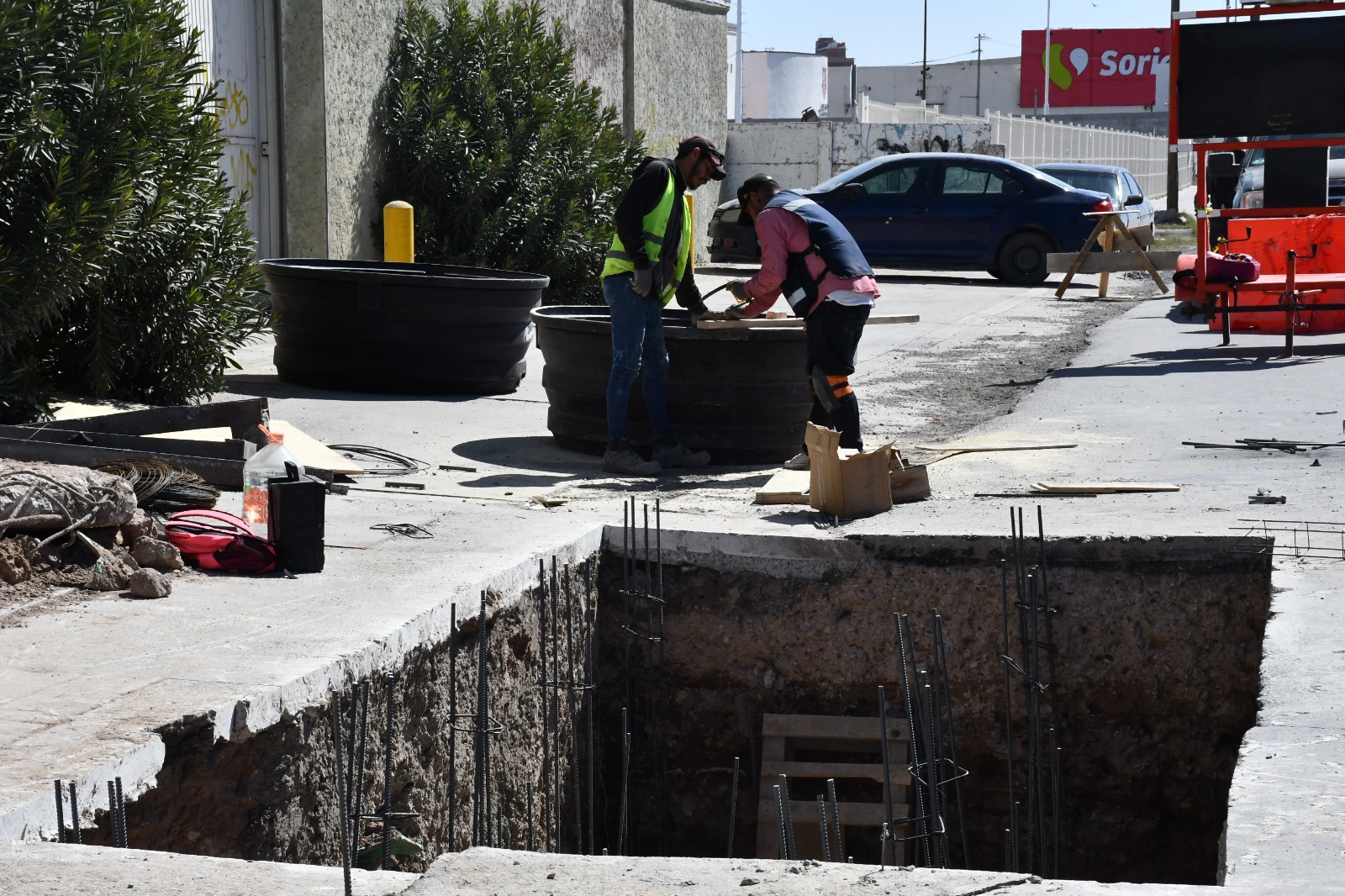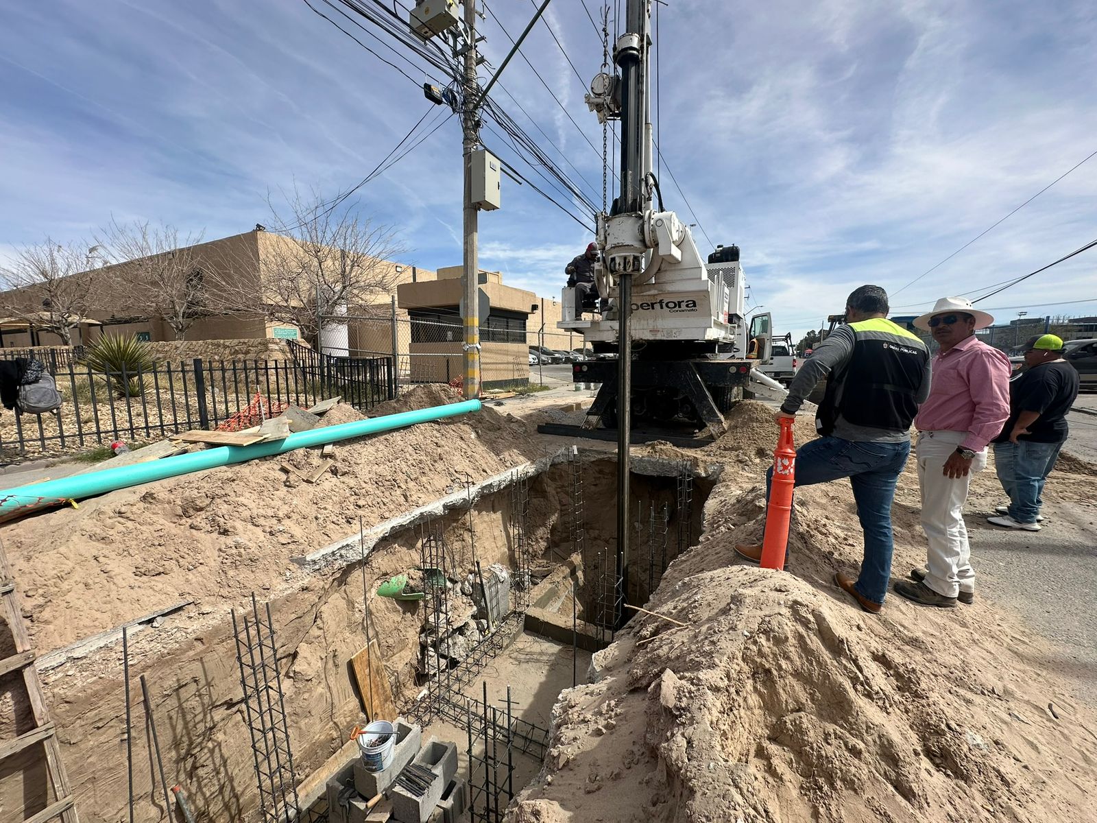 Daniel González García, titular de la dependencia, comentó que esta semana incluyeron en las labores la construcción de pozos en la calle Arizona en el cruce con Calzada del Río, así como en la avenida Sanders y el Eje Vial Juan Gabriel, calle Fray Junípero Serra antes de llegar a la Paseo Triunfo de la República, en la Antonio J. Bermúdez cruce con calle Kelvin, además de la avenida Insurgentes en las calles Fernando Montes de Oca y Juan Escutia, en donde ya se hicieron las excavaciones para iniciar con la construcción de cámaras que absorberán el agua.