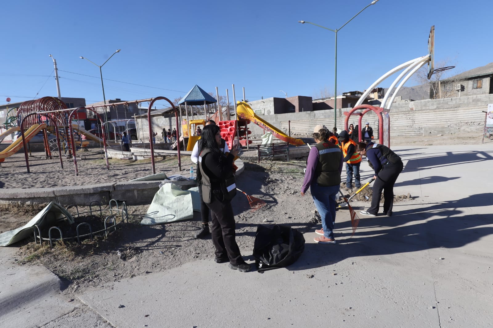 Además del saneamiento del área, se realizaron trabajos de rehabilitación del parque. Se instalaron columpios, ya que no contaba con ellos; se pintaron las bancas y se colocó el tablero en la cancha de básquetbol, mejorando las condiciones del espacio para las familias del sector.