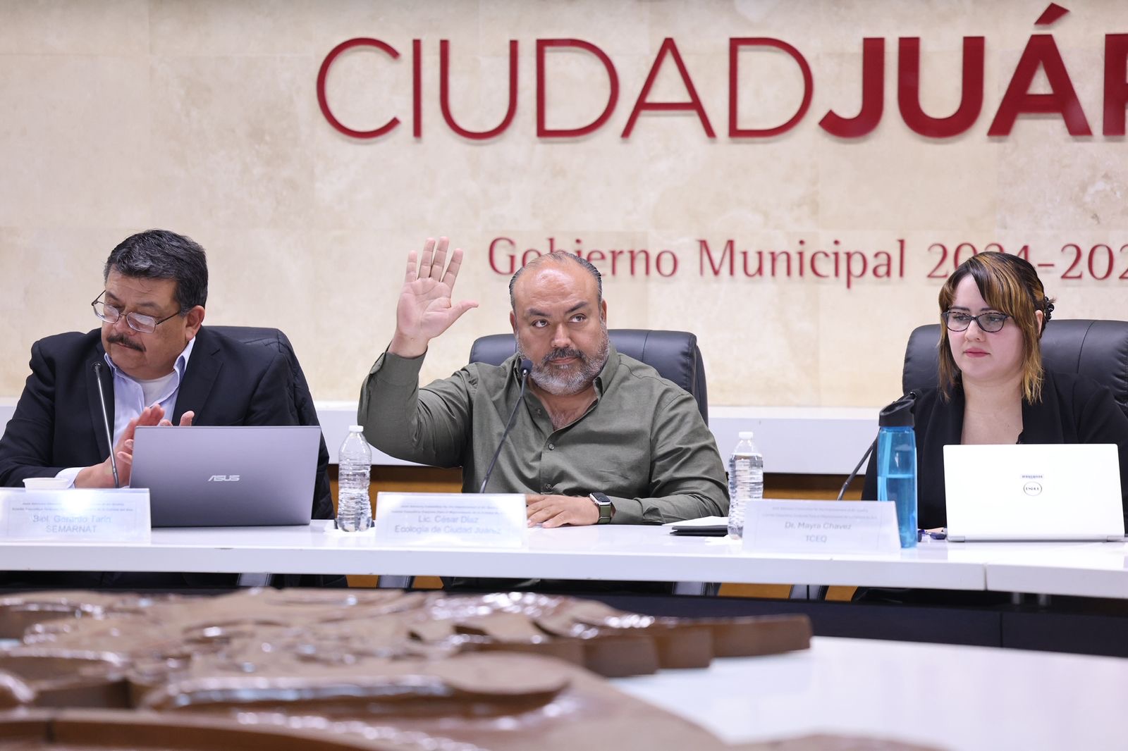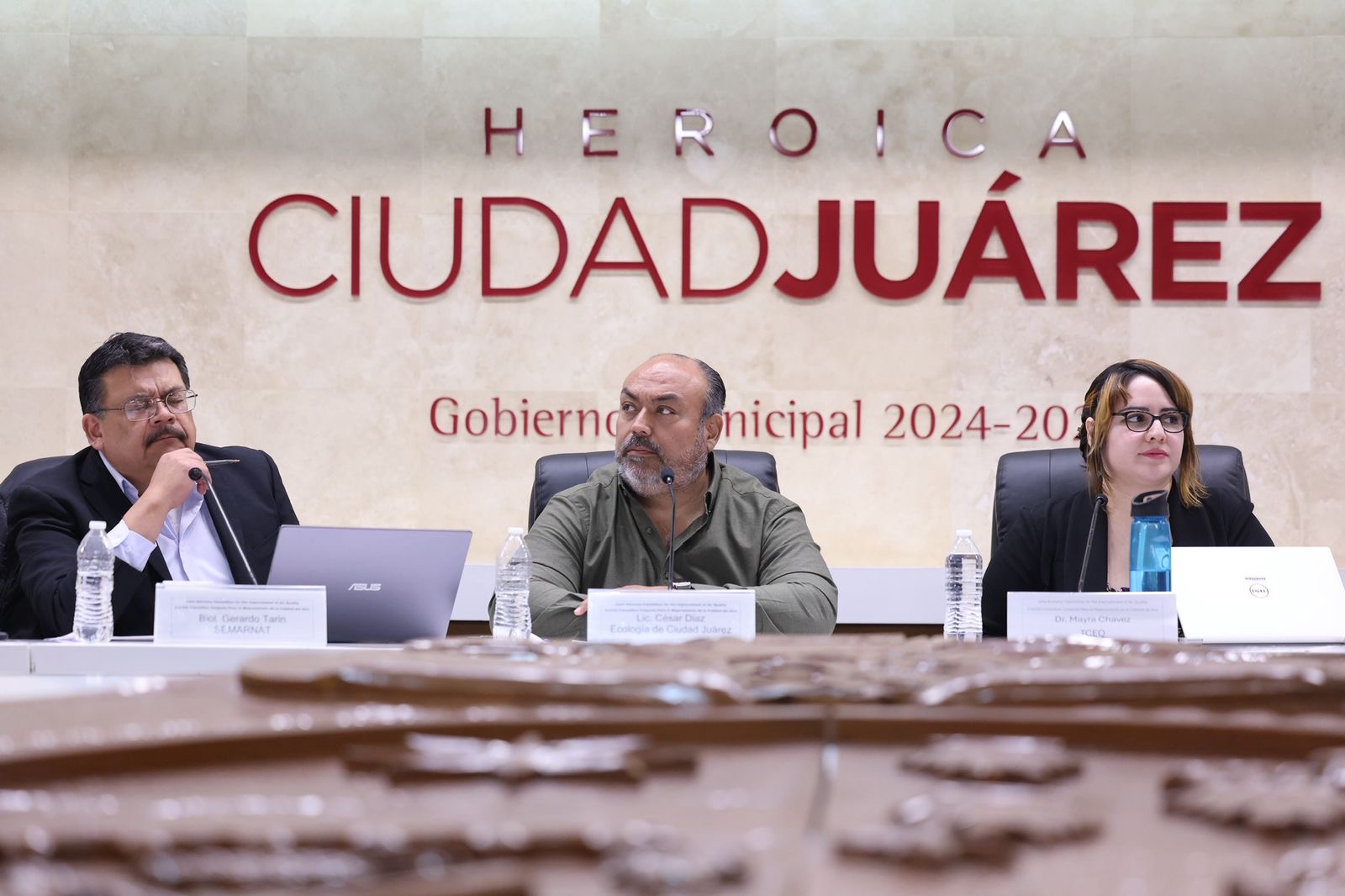 El efecto de los movimientos comerciales en el medio ambiente y la calidad del aire en la región, son algunos de los temas que este día se abordan en la reunión del Comité Consultivo Conjunto (CCCJAC) para la Mejora de la Calidad del Aire en Ciudad Juárez, El Paso, Texas y el Condado de Doña Ana, Nuevo México, evento que se lleva a cabo en la sala Francisco I. Madero, de la Unidad Administrativa Lic. Benito Juárez (presidencia municipal).
