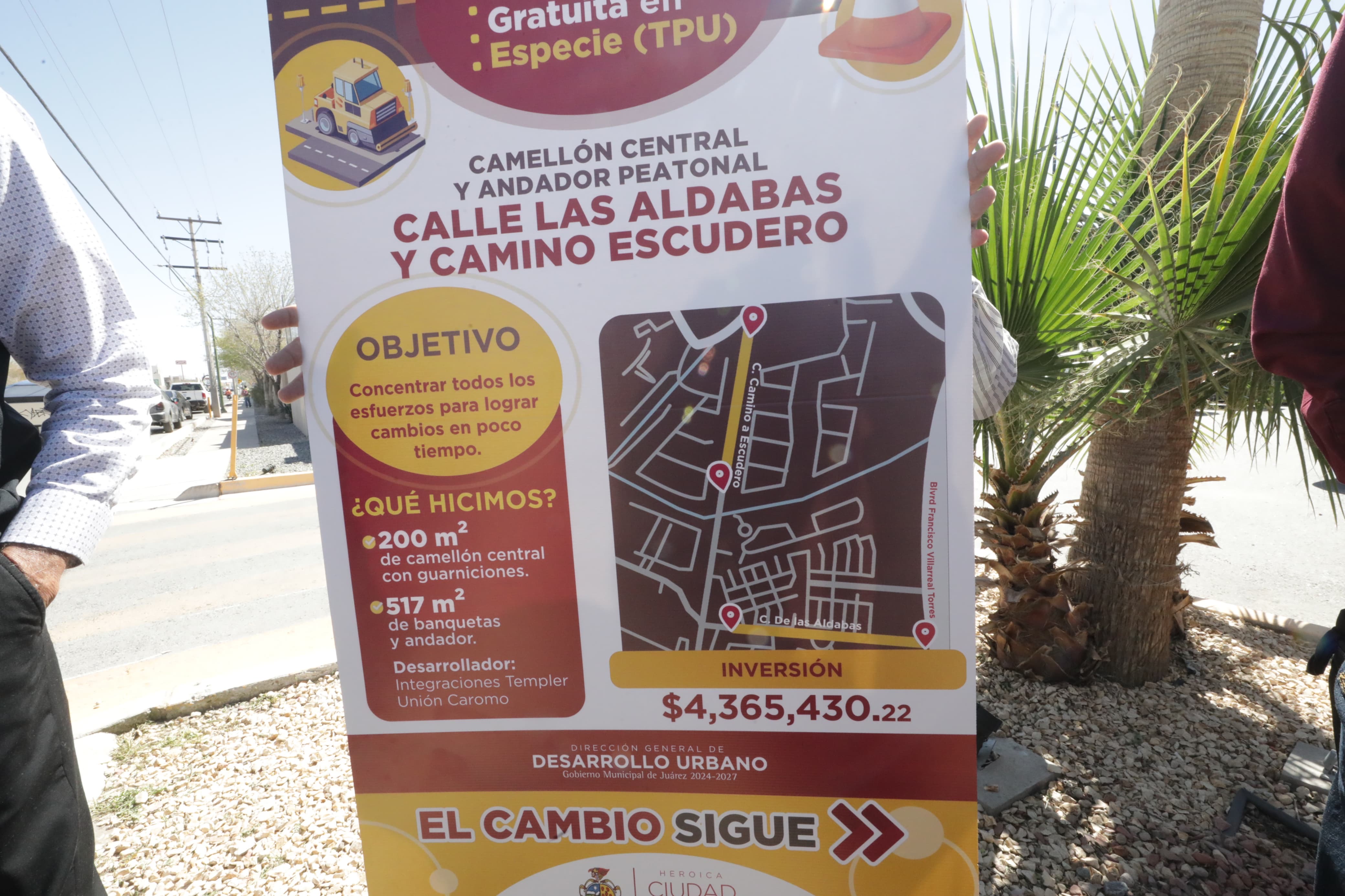 Informó que en esta zona se trabajó en una acción conjunta en la calle de Las Aldabas y la Camino Escudero, ya que los vecinos del área solicitaban la creación de andadores o un camellón para la seguridad del peatón.