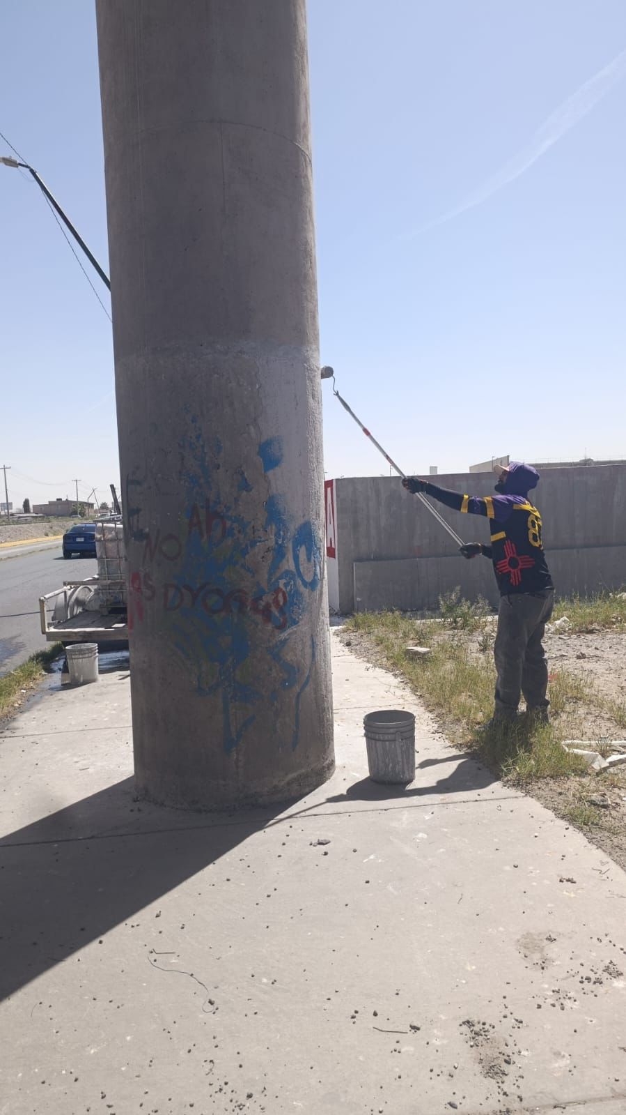 El trabajo de la cuadrilla es permanente, consiste en eliminar todo tipo de pintas y grafitis que afecten la imagen pública, lo cual se realiza en infraestructura urbana, señaló.