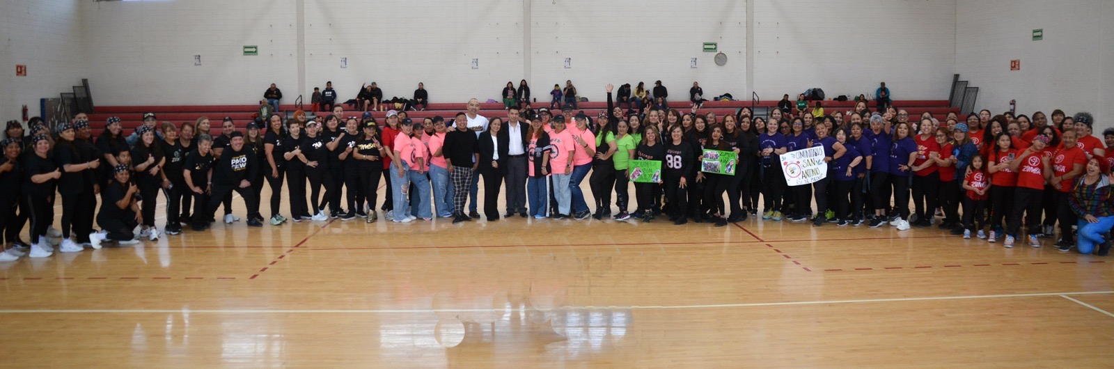 Con la participación de cerca de 200 usuarias de distintos espacios, la Dirección General de Centros Comunitarios llevó a cabo con éxito el Zumba Challenge en el Gimnasio de Deporte Adaptado “Lic. Benito Juárez”.