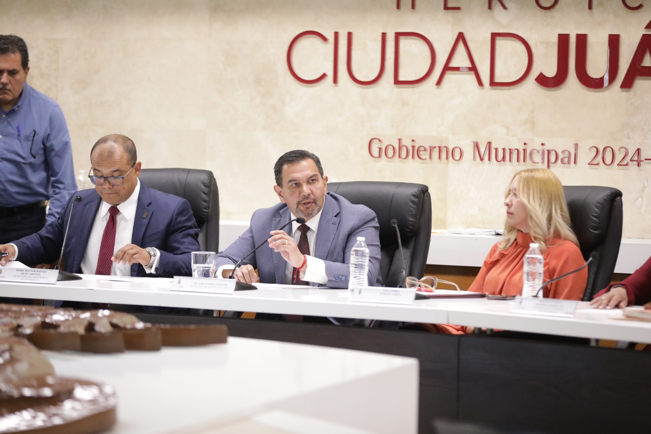 La reunión fue encabezada por el Presidente Municipal, Cruz Pérez Cuéllar; durante la misma se informó que la Comisión de Hacienda solicitó la autorización para modificar el objeto de estos proyectos, los cuales ya estaban contemplados en el Presupuesto de Egresos para el ejercicio fiscal 2026 del Municipio.