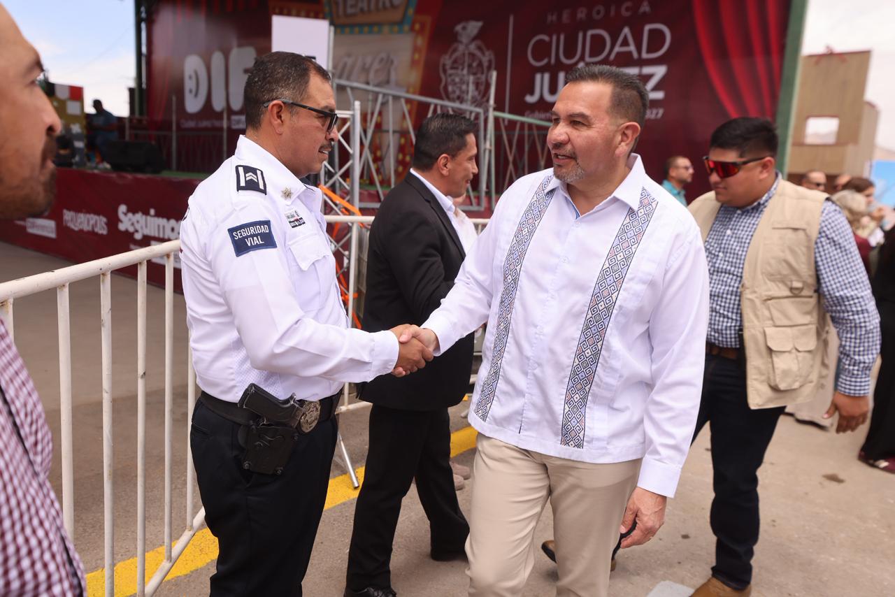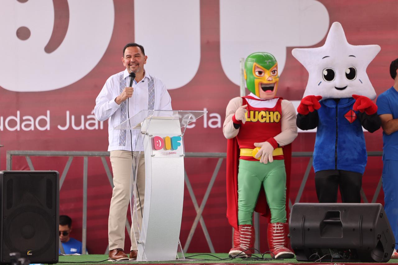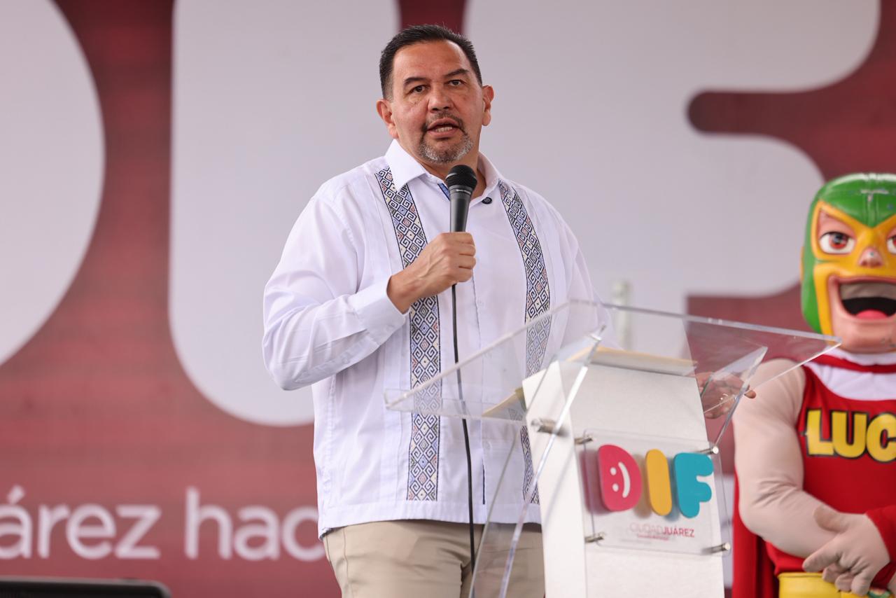 “Quiero distinguir la presencia de las y los niños, así como de sus familias, ya que son ustedes quienes nos recuerdan que vale la pena seguir trabajando para que las cosas se sigan transformando en Juárez y que se sigan transformando en el estado de Chihuahua con la visón de un hombre que da resultados como lo es Cruz Pérez Cuéllar”, expresó.