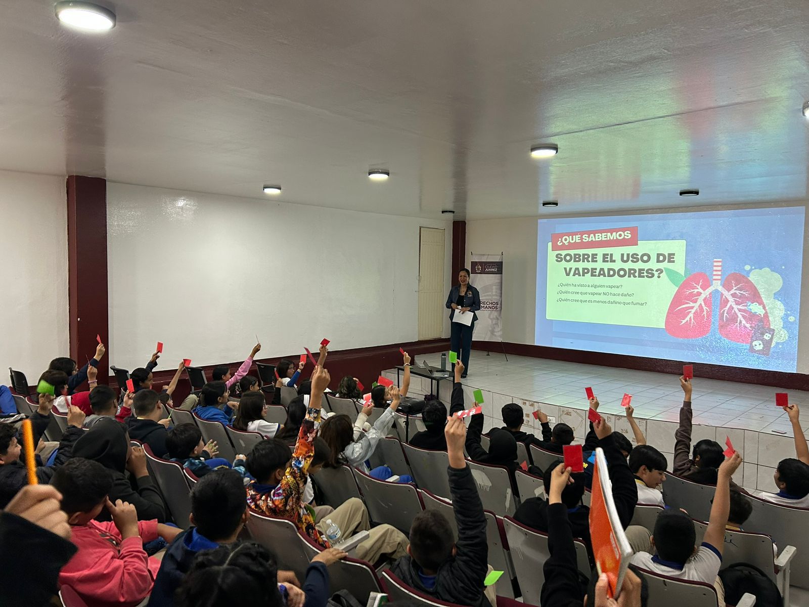 “Fue un espacio muy valioso de diálogo y reflexión, donde a través de dinámicas participativas desmontamos mitos e información imprecisa que suele circular sobre el uso de vapeadores”, mencionó el titular de la dependencia, Santiago González Reyes.