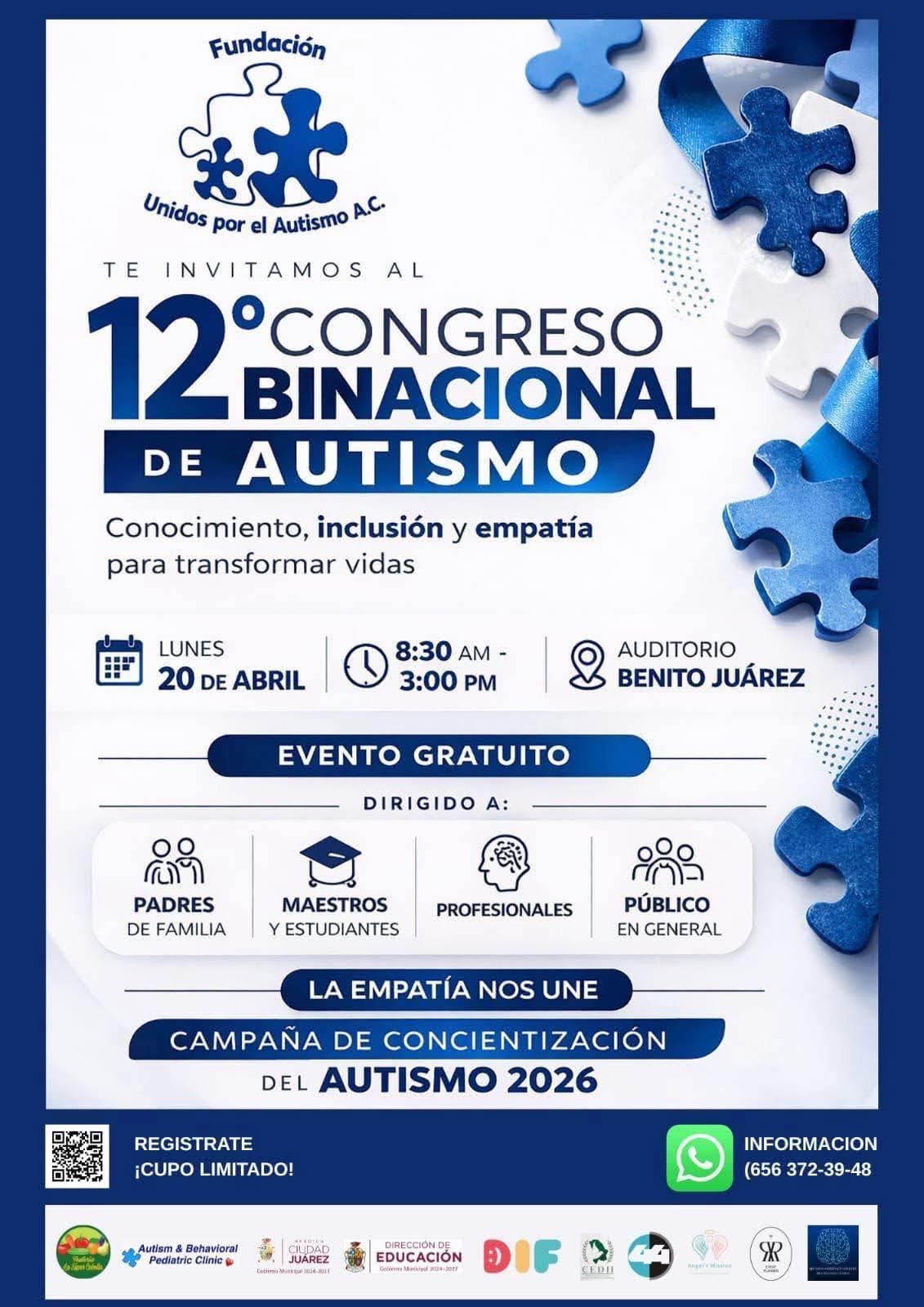 El evento se llevará a cabo este 20 de abril en el Auditorio Cívico Municipal Lic. Benito Juárez, de 8:30 de la mañana a 3:00 de la tarde, con acceso dirigido a familias, docentes, especialistas y público en general.