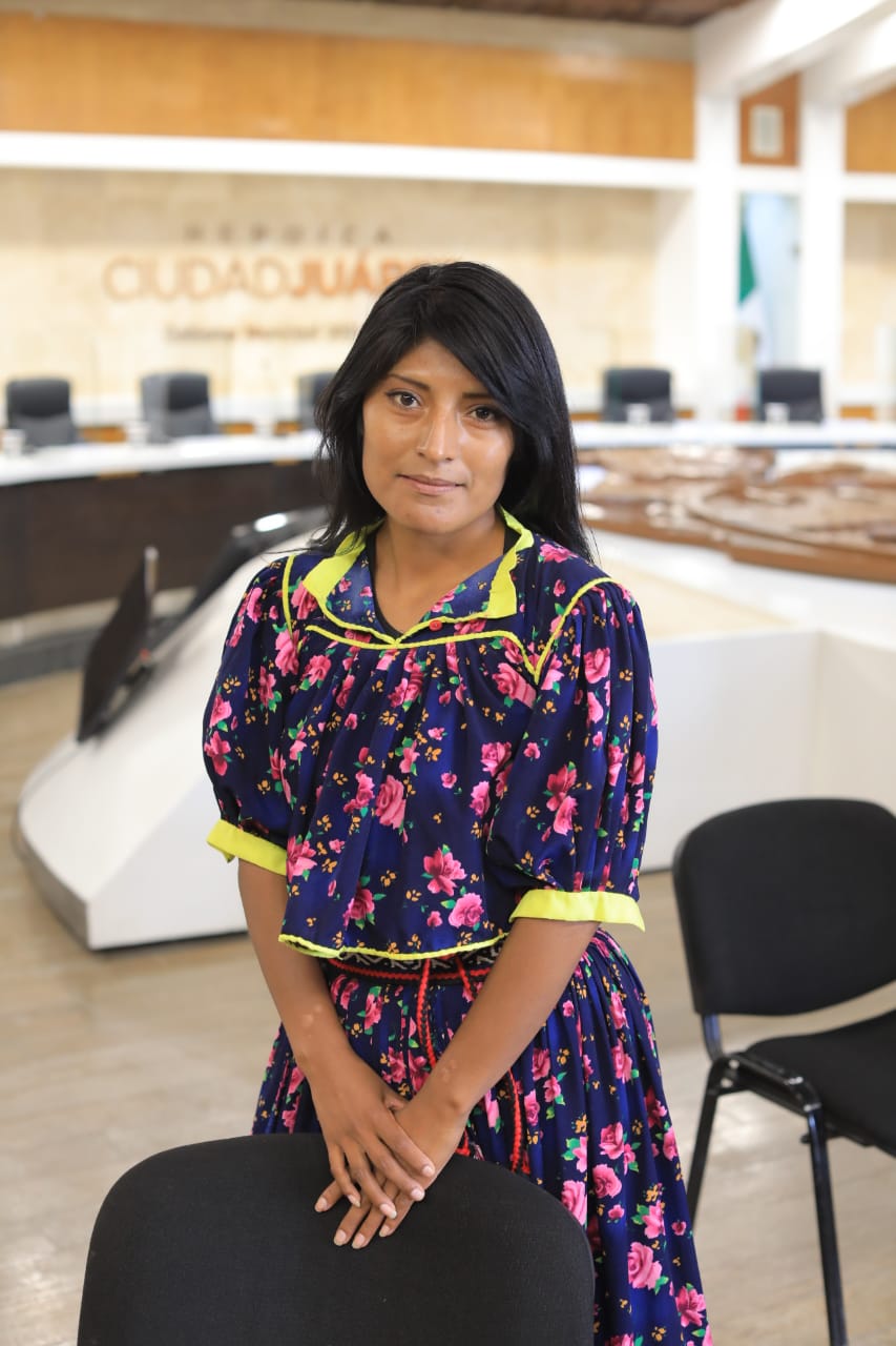 Desde el Ayuntamiento se encuentra enfocada a atender las necesidades de las 8 comunidades de pueblos originarios asentadas en Juárez y apoya las iniciativas para combatir la violencia contra las mujeres y niñas.