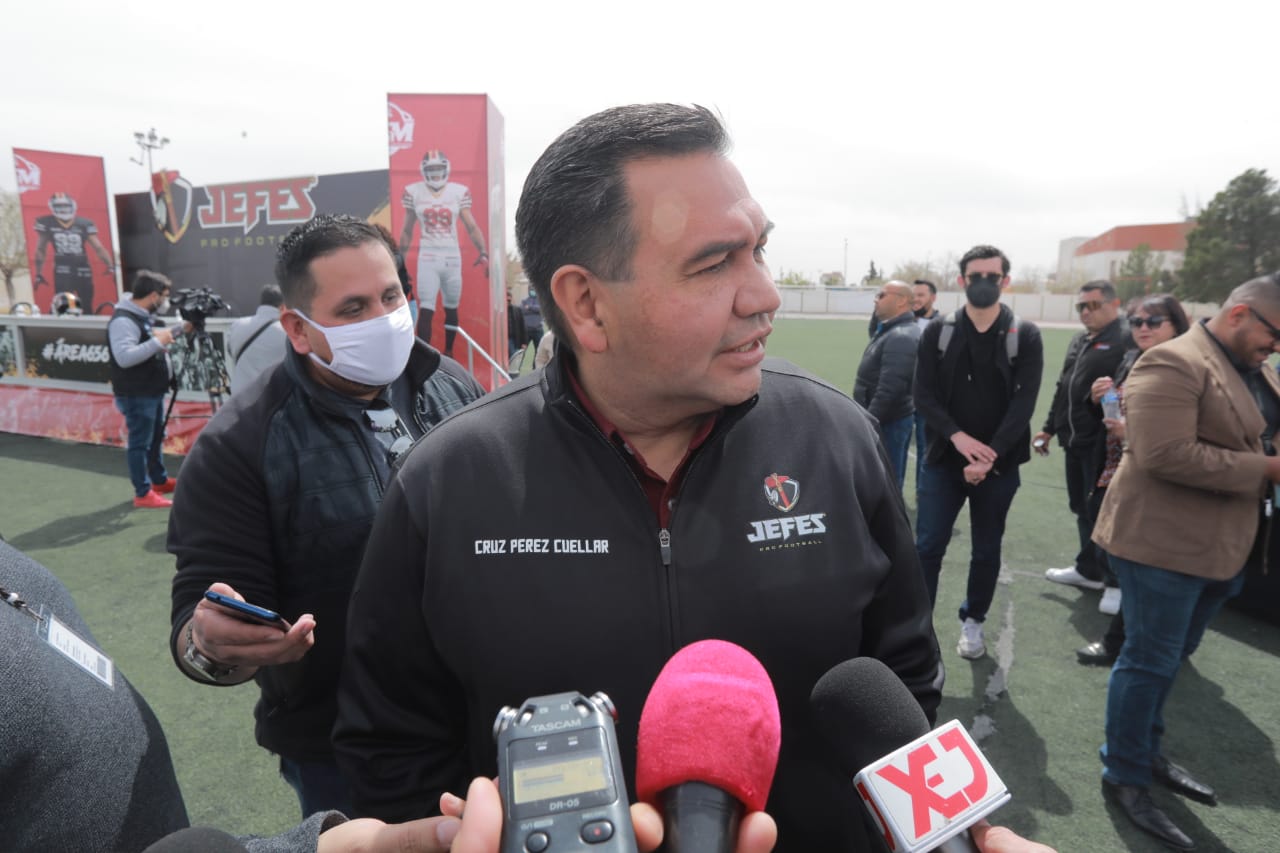 El Presidente Municipal, Cruz Pérez Cuéllar, asistió a la presentación en el estadio 20 de noviembre del equipo de futbol americano profesional ??Jefes?, el cual formará parte de la Liga FAM-YOX que dará inicio el próximo 30 de abril.