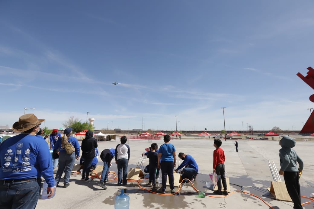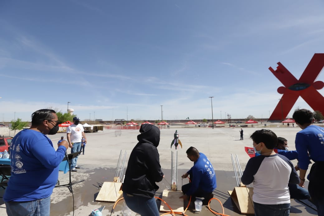 Familias juarenses disfrutaron del concurso de cohetes de agua organizado de manera conjunta por Royal Rangers o Exploradores del Rey, la Dirección de Atención a Organizaciones Religiosas y el Consulado General de Estados Unidos en México.