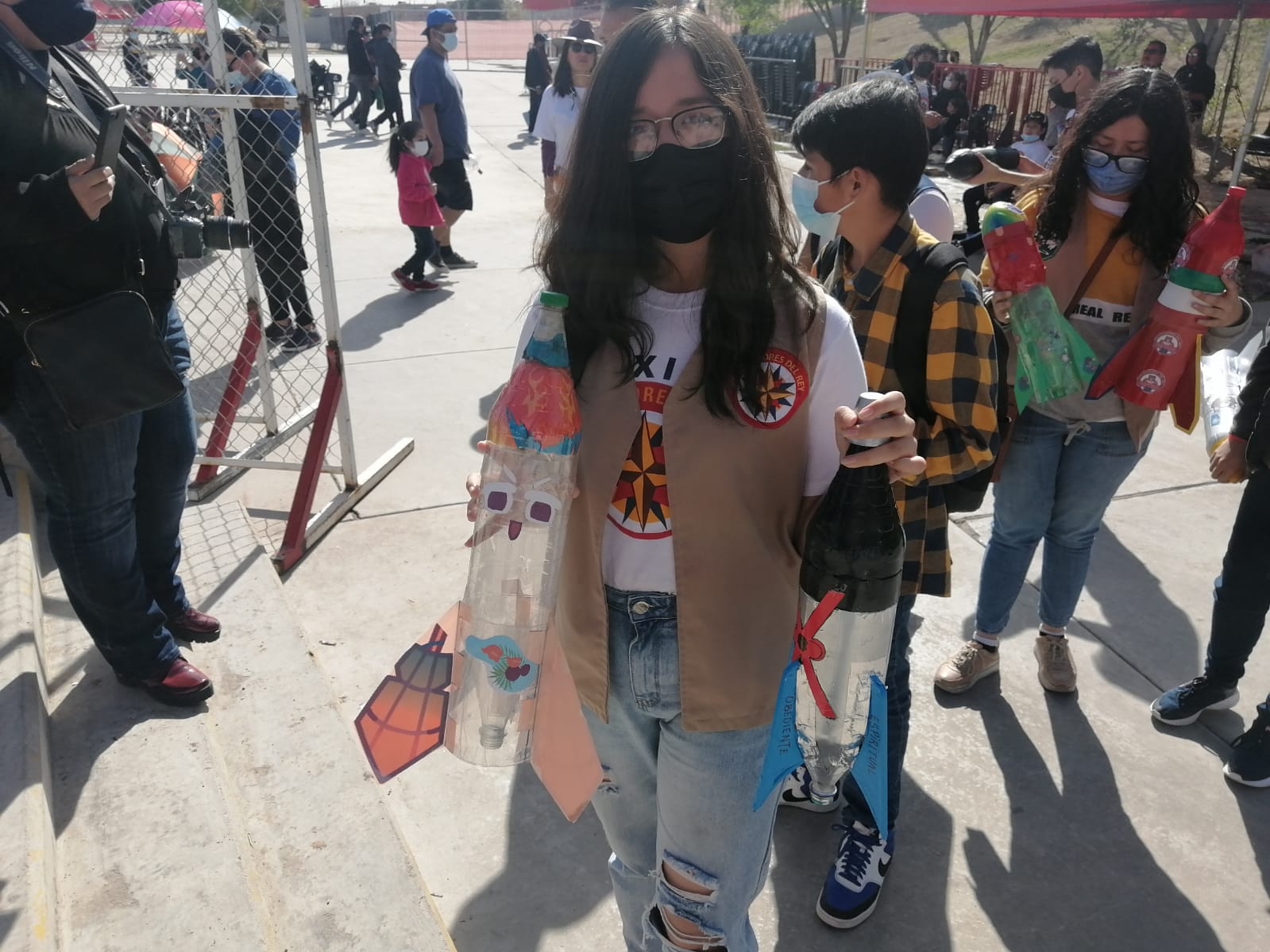 Los participantes acudieron con cohetes elaborados con botellas plásticas, los cuales diseñaron en familia previamente.