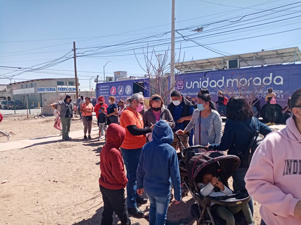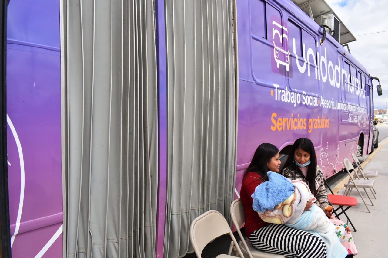 Con el objetivo de que la distancia física no sea un impedimento para que las mujeres y sus hijos e hijas accedan a los servicios del Gobierno Municipal, el Instituto Municipal de las Mujeres (IMM) hace uso de la Unidad de Atención Móvil en diferentes colonias de la ciudad.