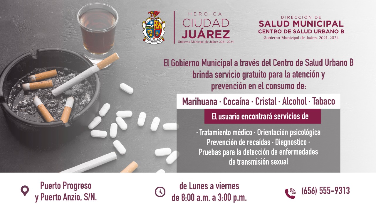 Los interesados pueden comunicarse al número de teléfono 656-555-9313, donde personal del Centro de Salud Urbano B les programará una cita para la intervención, además, una vez que se haga el diagnóstico correspondiente, se definirá si el ciudadano continuará con su orientación en el Centro de Salud o se le canalizará con otra institución especializada.