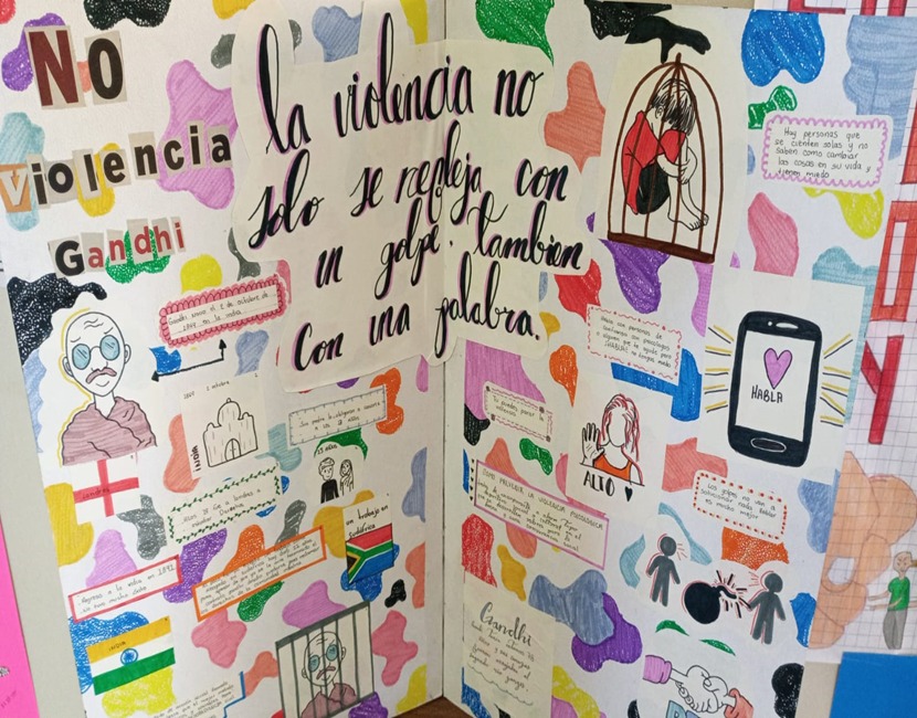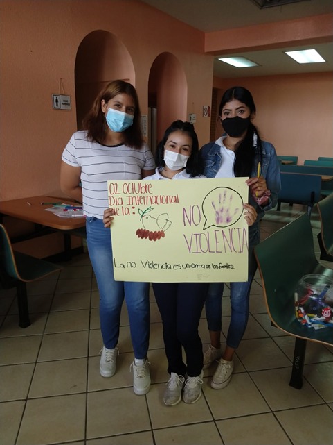 Alumnos de los cuatro Centros de Atención Social y Educativa para las Familias de DIF desarrollaron sus talentos creativos al realizar carteles con mensajes alusivos a la ????No violencia? como un homenaje al nacimiento de Mahatma Gandhi, líder del movimiento de independencia de la India y pionero de la filosofía pacifista.