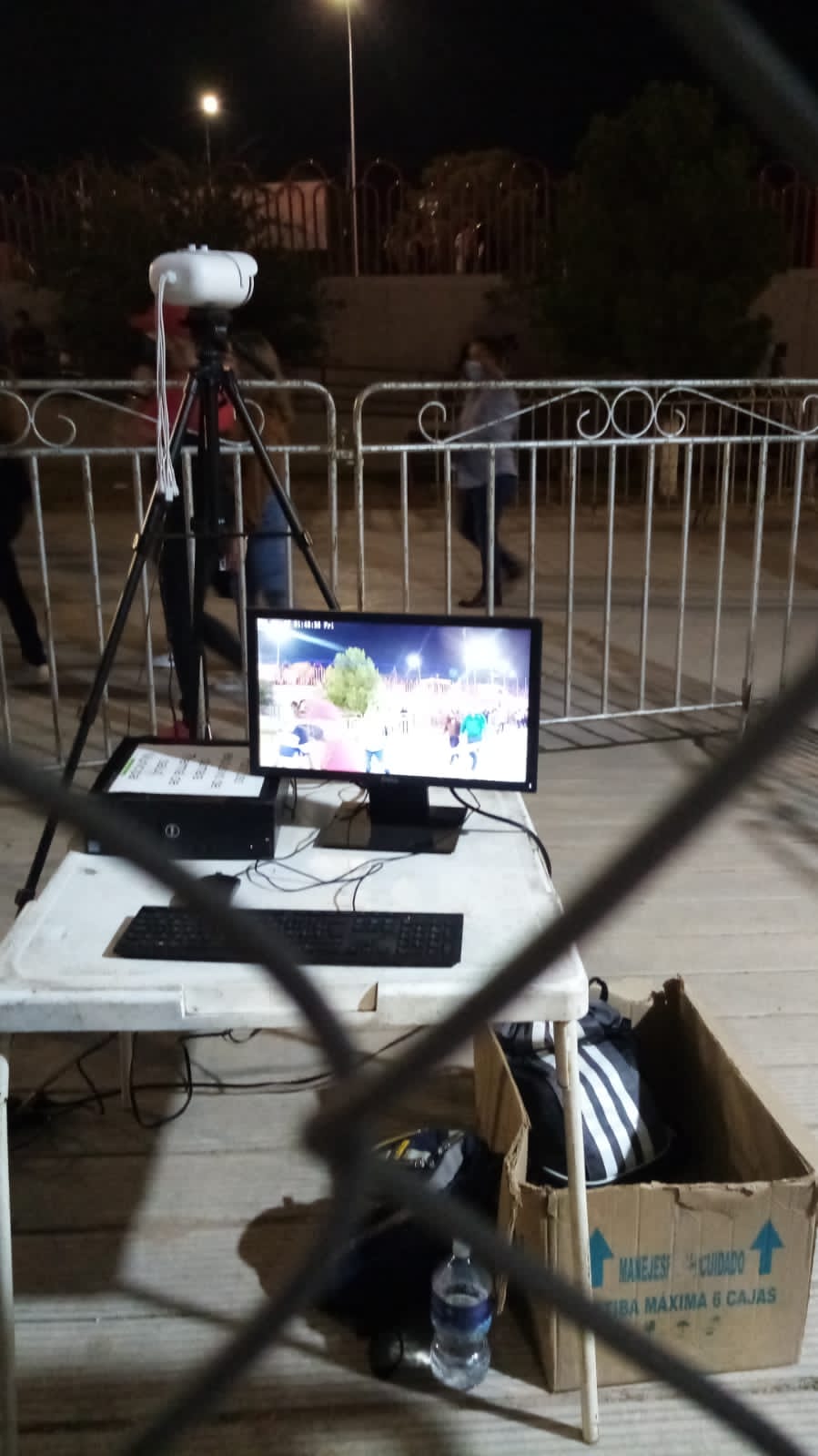 El equipo monitorea la temperatura de los grupos de personas que van ingresando a las instalaciones de la feria y es monitoreada desde una computadora donde alerta cuando alguna persona presenta temperatura corporal alta y es sospechosa de estar contagiada de coronavirus.