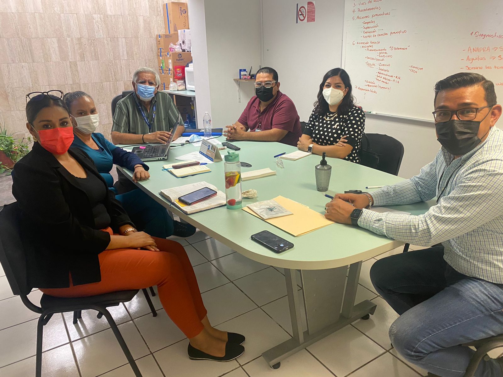 En la mesa de trabajo participó la directora de Salud, Daphne Santana Fernández; así como Ramón Murrieta, titular de la Jurisdicción Sanitaria II y Verónica Carrión, de Epidemiología; entre otros.