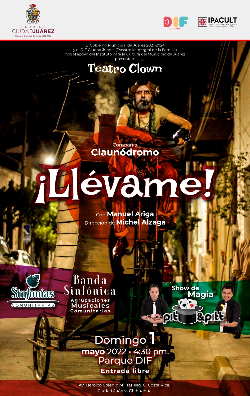 La jornada cerrará con teatro clown por la compañía Claunódromo y su obra ??Llévame? con dirección de Michel Alzaga. El acceso al evento es de carácter gratuito para toda la familia.