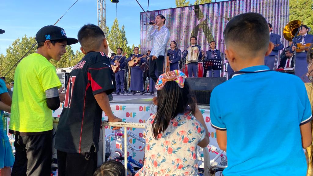 Las familias asistentes disfrutaron del Parque DIF como un gran espacio de diversiones. Algunas hicieron día de campo mientras sus niñas y niños corrieron al aire libre y disfrutaron de juegos mecánicos, en tanto que otras no se separaron de su lugar frente al gigantesco escenario donde desfilaron orquestas, magos, cantantes y actores de talla internacional.