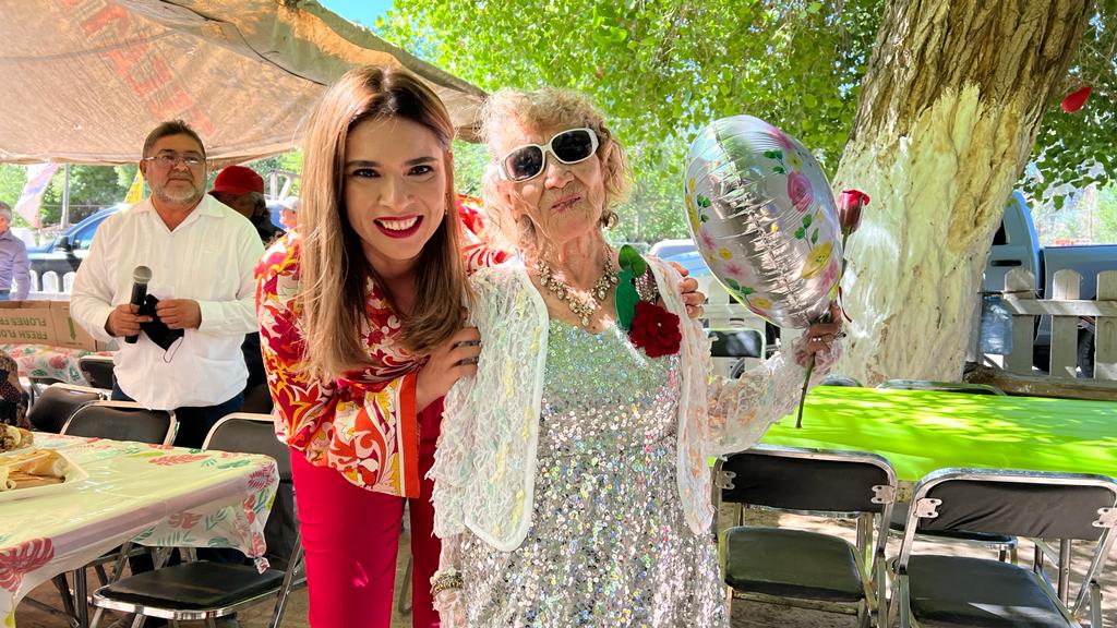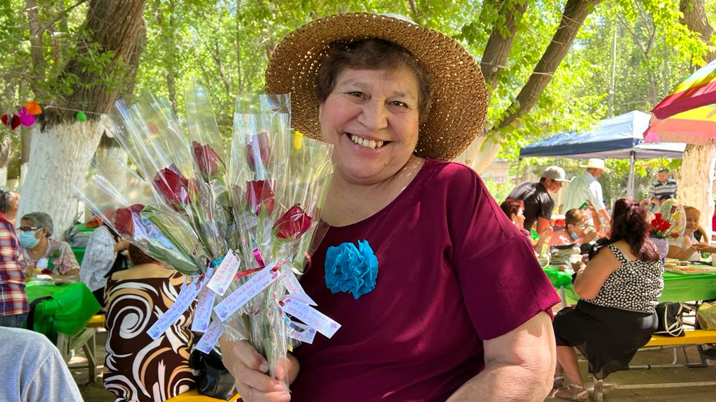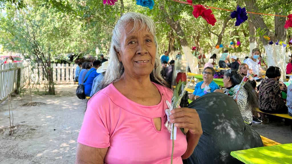 Para iniciar con las celebraciones del Día de las Madres, Rubí Enríquez, presidenta del Sistema para el Desarrollo Integral de la Familia de Juárez, atendió la invitación del Consejo del Adulto Mayor Santa Rosa de Lima al evento organizado para festejar a las madres del grupo en la granja La Rosita y a donde llegó con frescas rosas rojas para obsequiar.