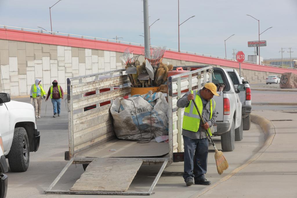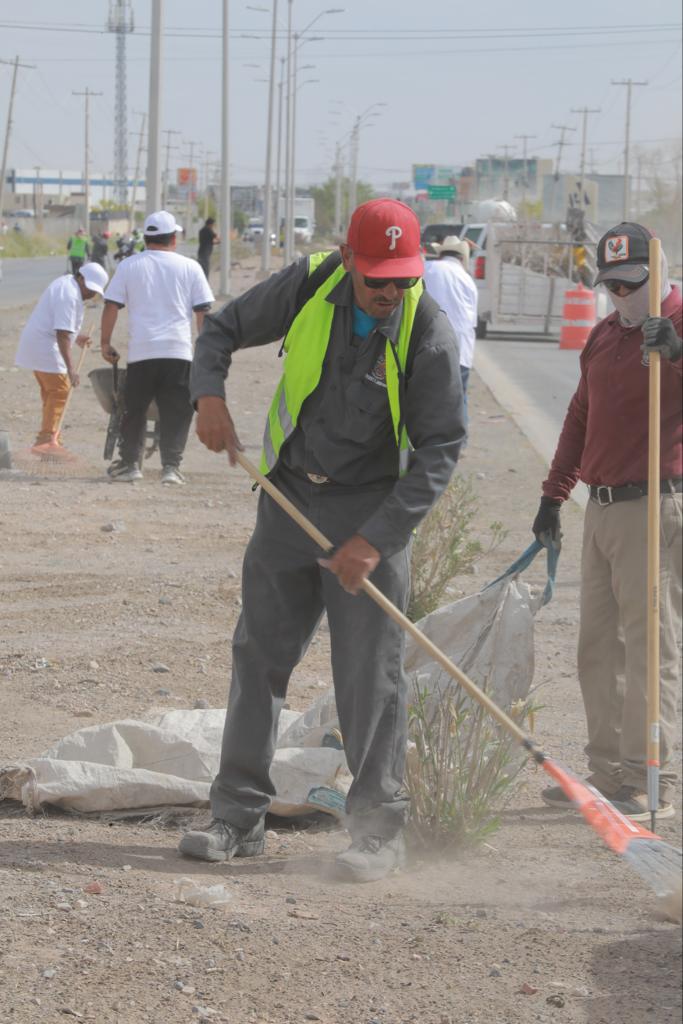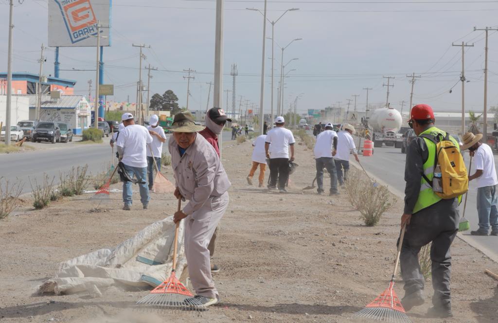 Este jueves, la Dirección General de Servicios Públicos, la Dirección de Desarrollo Económico y la Asociación de Yonkeros, pusieron en marcha la Segunda Cruzada por la Entrada de Ciudad Juárez en la Glorieta del Kilómetro 20 para limpiar la zona sur de esta frontera.