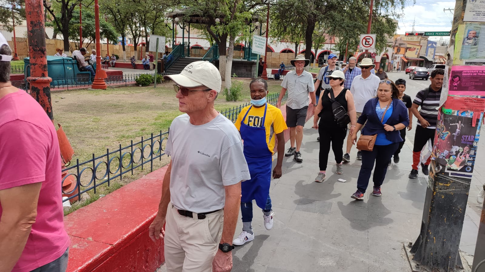 Los turistas recorrieron la calle Mariscal hasta llegar a la Catedral de Nuestra Señora de Guadalupe y a la Misión de Guadalupe, sitios en donde se tomaron fotografías y conocieron la historia de los espacios, el primero fundado por el Fray García de San Francisco en 1659.