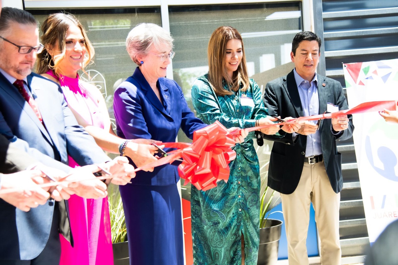 Los encargados de cortar el listón inaugural fueron la presidencia de UTEP, Heater Wilson; Rubí Enríquez, presidenta del DIF Municipal; Lennys Sánchez, directora de Fundación Axcel; Ricardo Mora, de CEO de Technology Hub; Eric Cohan, Cónsul General de Estados Unidos en Ciudad Juárez y Mauricio Ibarra, Cónsul General de México en El Paso, Texas.