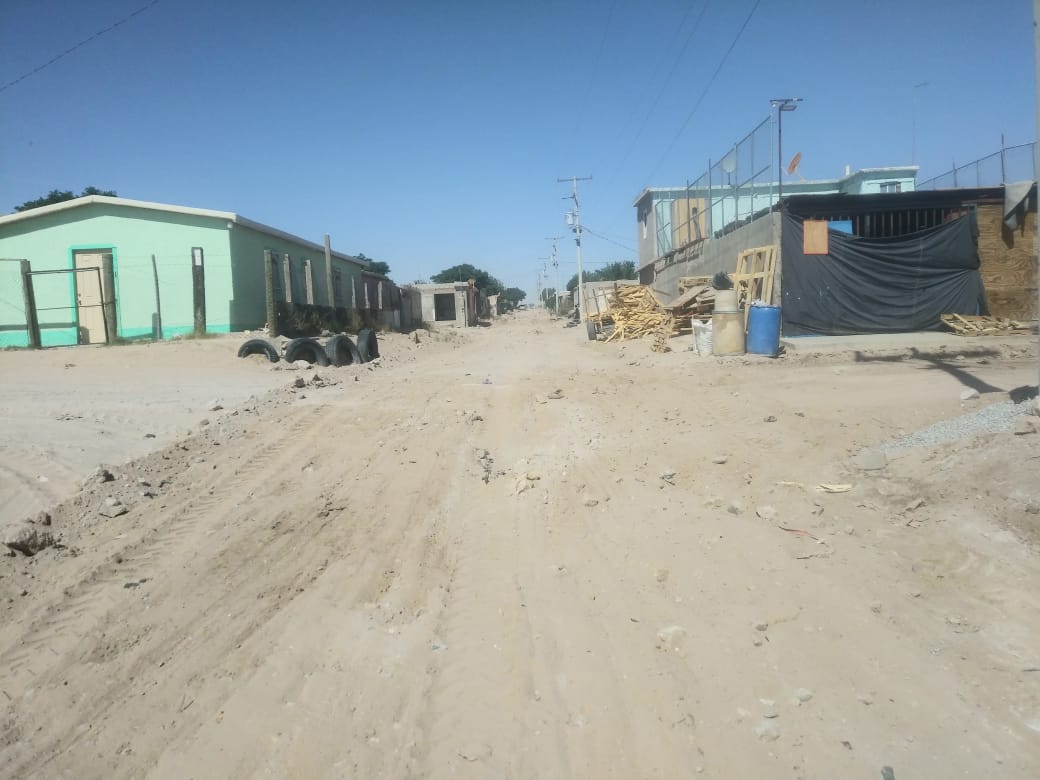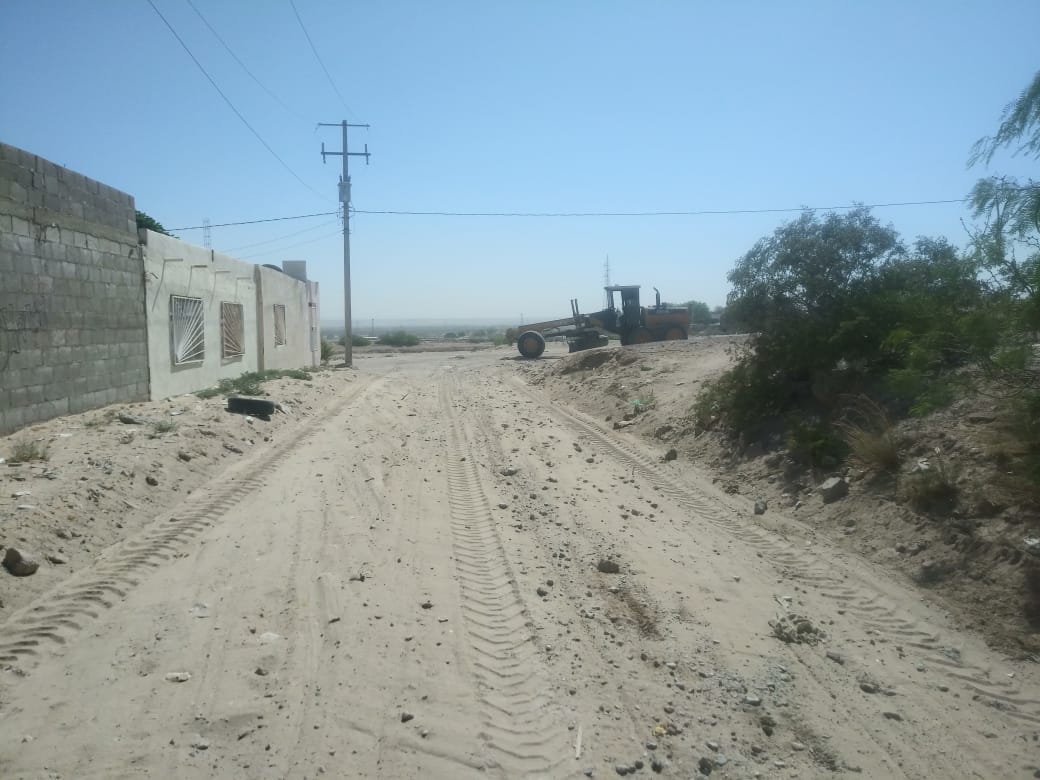 Realiza Obras Públicas emparejamiento de terracería en la colonia Ampliación Loma Blanca