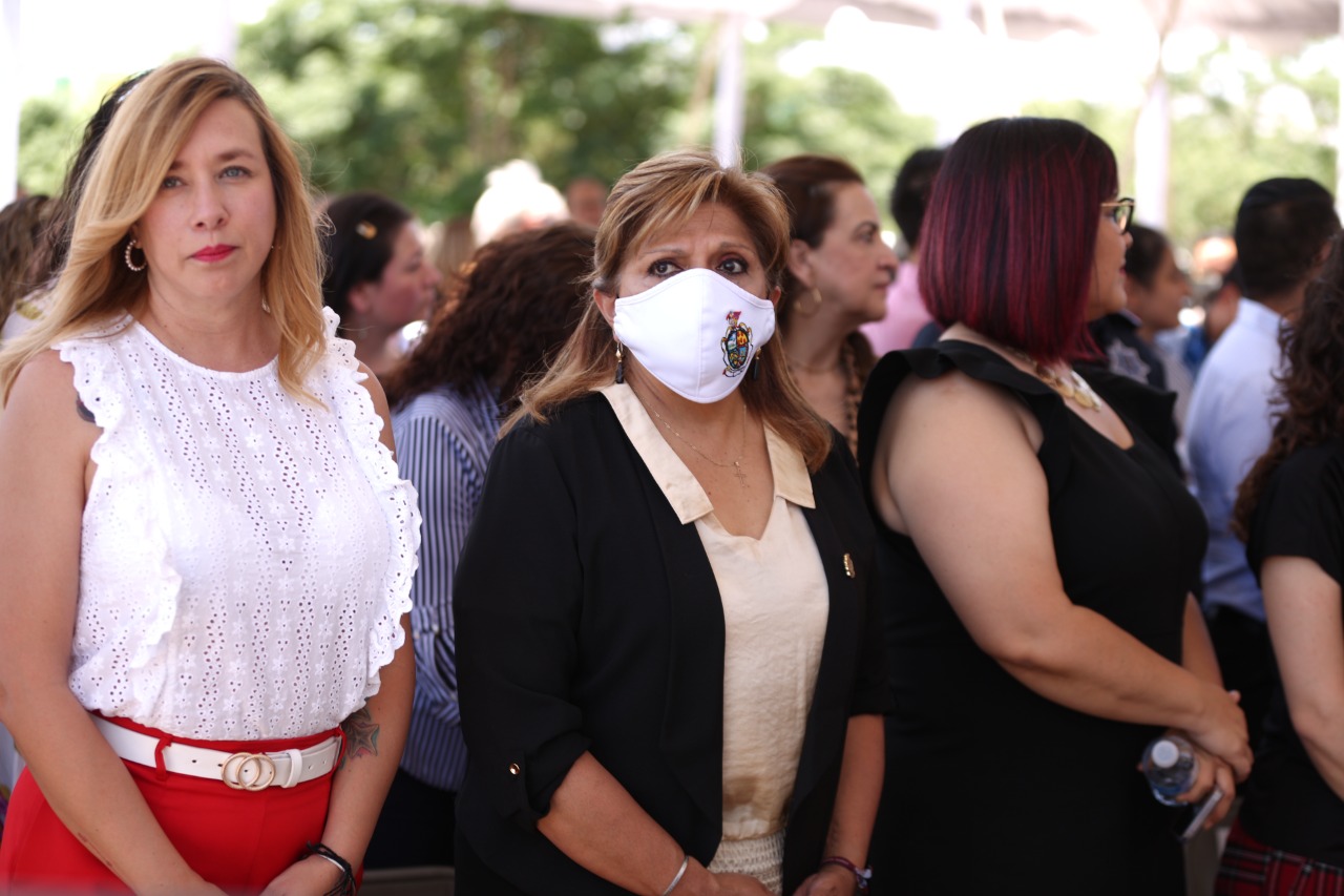 En la ceremonia de reconocimientos estuvieron Martha Aracely González Holguín, directora de Educación Municipal; Pedro Hidalgo Martínez, coordinador general de la región norte del SNTE; Coronel de Infantería Diplomado de Estado Mayor Marcos Alonso Gastelum Antunas, Coronel de la Guarnición Militar de la Plaza; Coronel de Caballería Diplomado de Estado Mayor Remigio Cruz Domínguez, Comandante del Noveno Regimiento de Caballería; Jesús Salomé Rodríguez Manjarrez, representante del Comité Ejecutivo Nacional para la sección 8 del SNTE; Jorge Marcial Bueno Quiroz, regidor del Ayuntamiento de Juárez; Arturo Rivera Barreno, Oficial Mayor del Municipio; Guillermo Enríquez Alvídrez, secretario de Organización región Juárez y Carlos Grado, director de planeación del DIF Municipal.