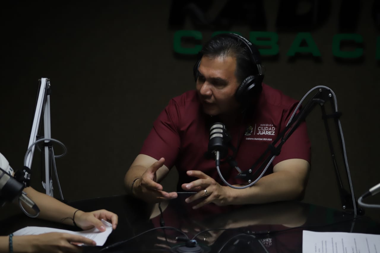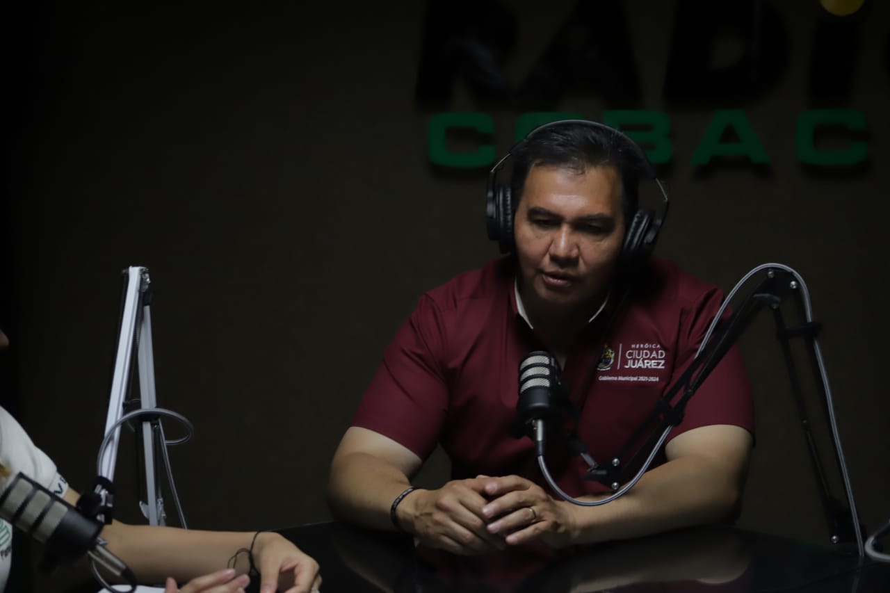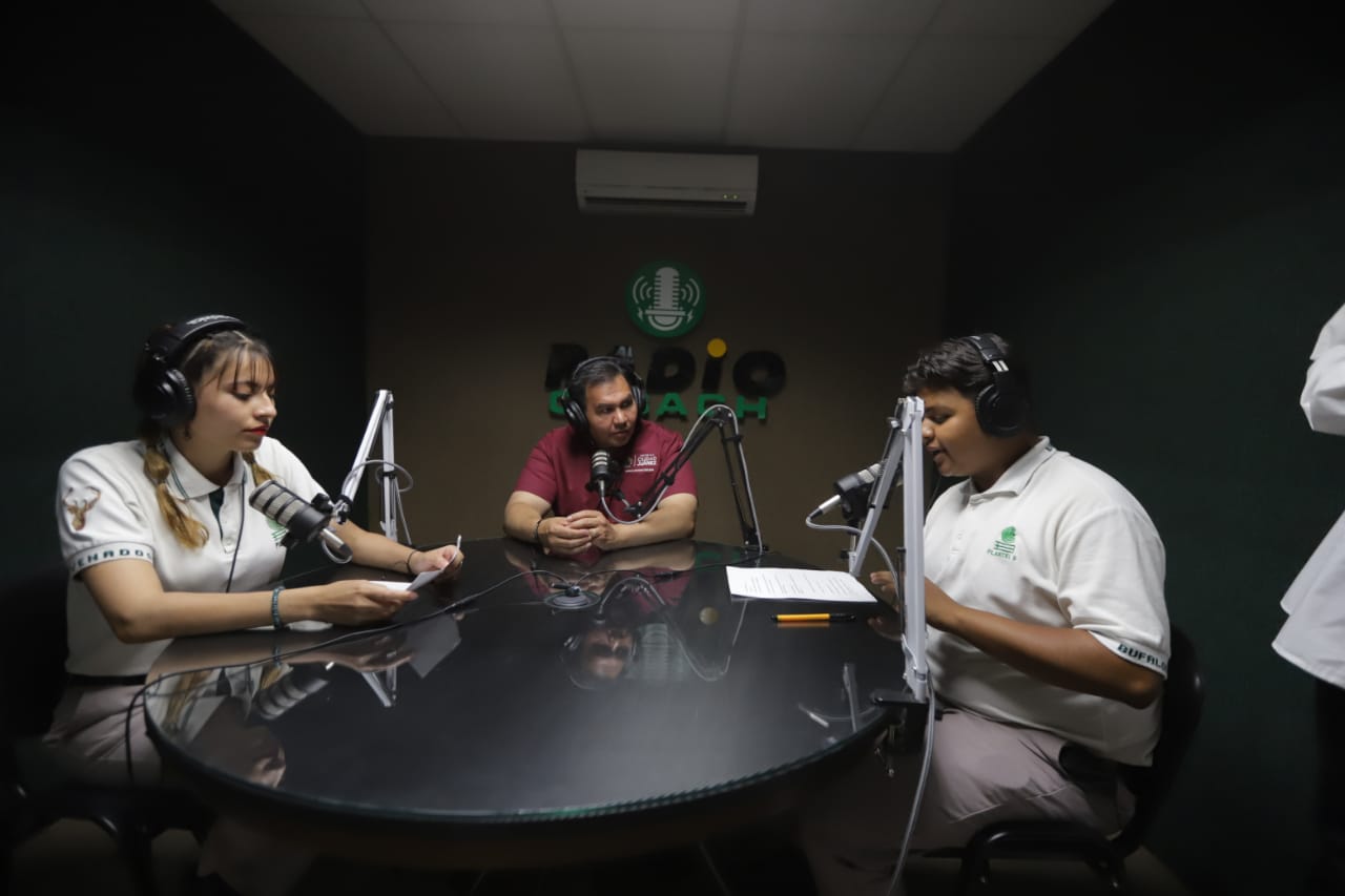 Al finalizar el alcalde acudió hasta la cabina de Radio COBACH, donde fue entrevistado por Brayan Macías y Dalay Castanón, ambos estudiantes del Colegio de Bachilleres, quienes aprovecharon la oportunidad para preguntarle sobre sus años de juventud y los proyectos para esta ciudad, particularmente los que están enfocados en los jóvenes.