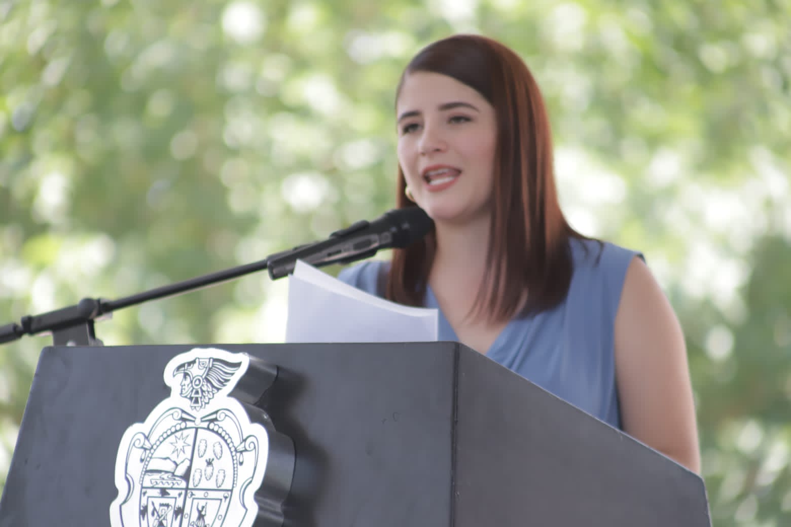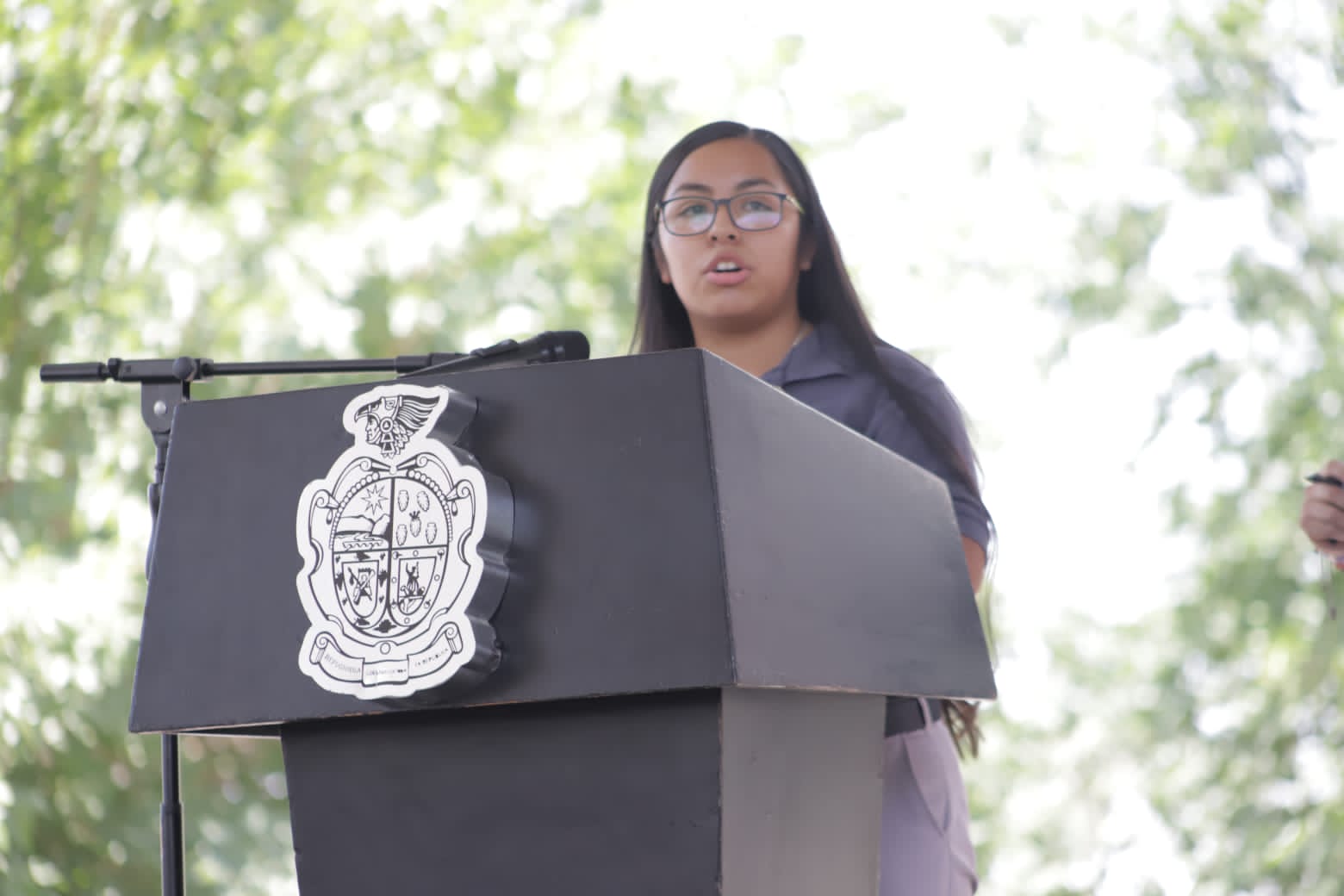 La alumna Layda Paola Nuñez, bicampeona en oratoria de este plantel, ofreció un mensaje sobre la importancia de esta visita ya que dijo, es inspiración y respaldo para ella y sus compañeros estudiantes.