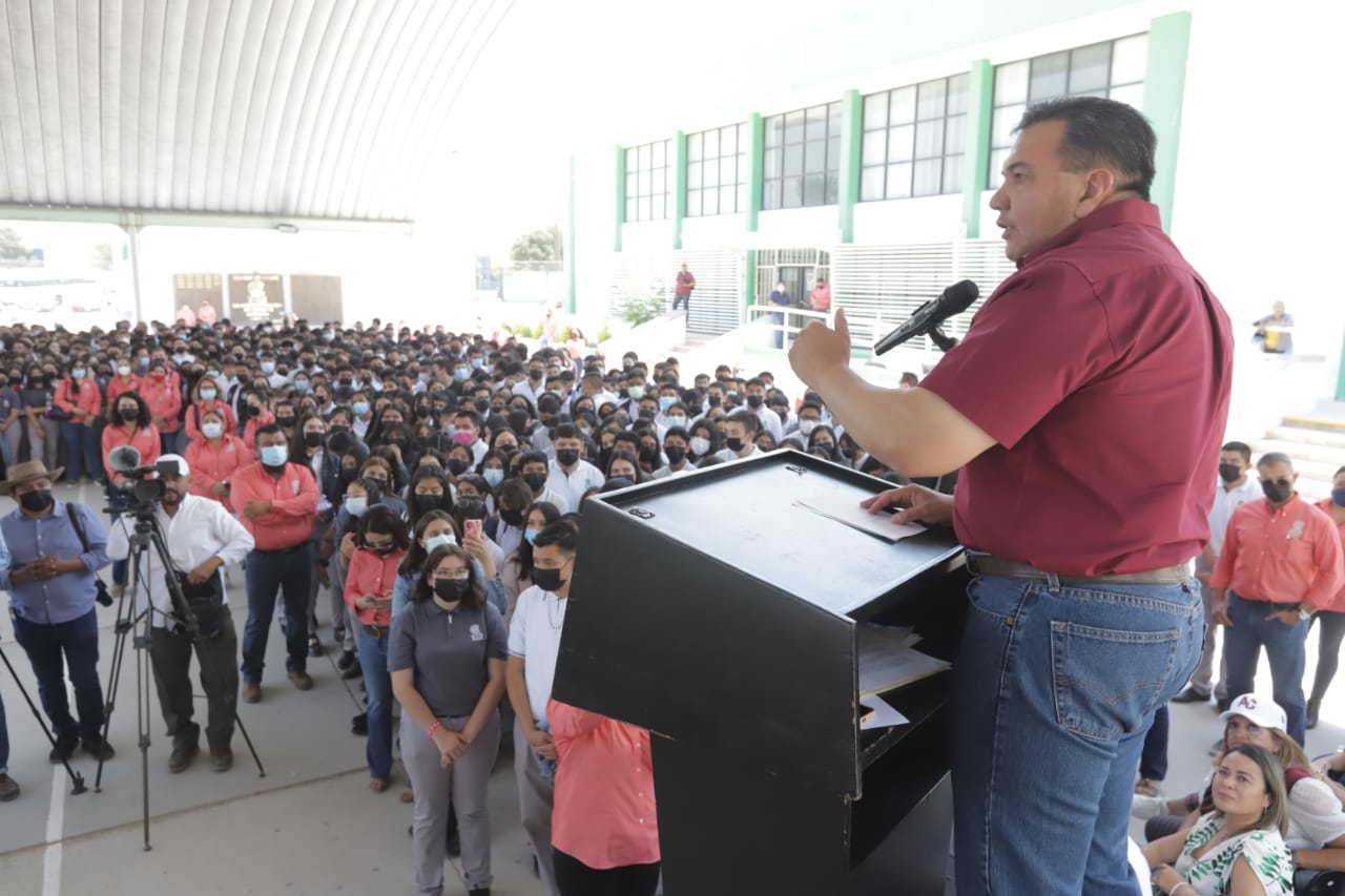 Con un mensaje de perseverancia y motivación, el Presidente Municipal, Cruz Pérez Cuéllar, acudió al Colegio de Bachilleres plantel número 11, la Casa de los Venados.